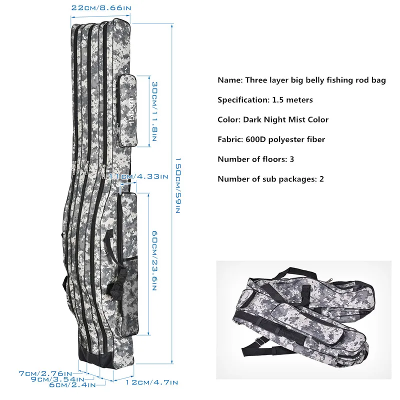 Bolsa de Pesca de Mar de vientre grande plegable de tres capas de 1,2 m/1,5 m, bolsa de caña de pescar de doble hombro, kit de herramientas para almacenamiento al aire libre
