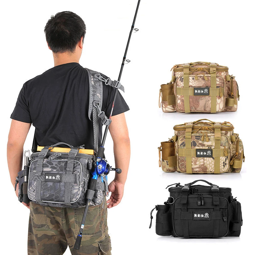Bolsa de pesca multifunción para aparejos al aire libre, caja de almacenamiento de señuelos de carrete, bolso de mano para cámara de hombro de cintura, bolsa cruzada para caña de pescar de carpa