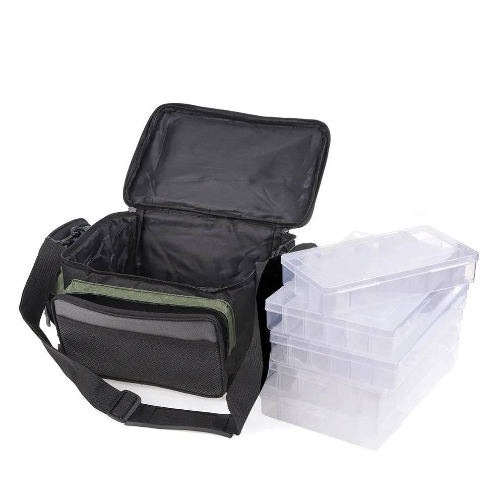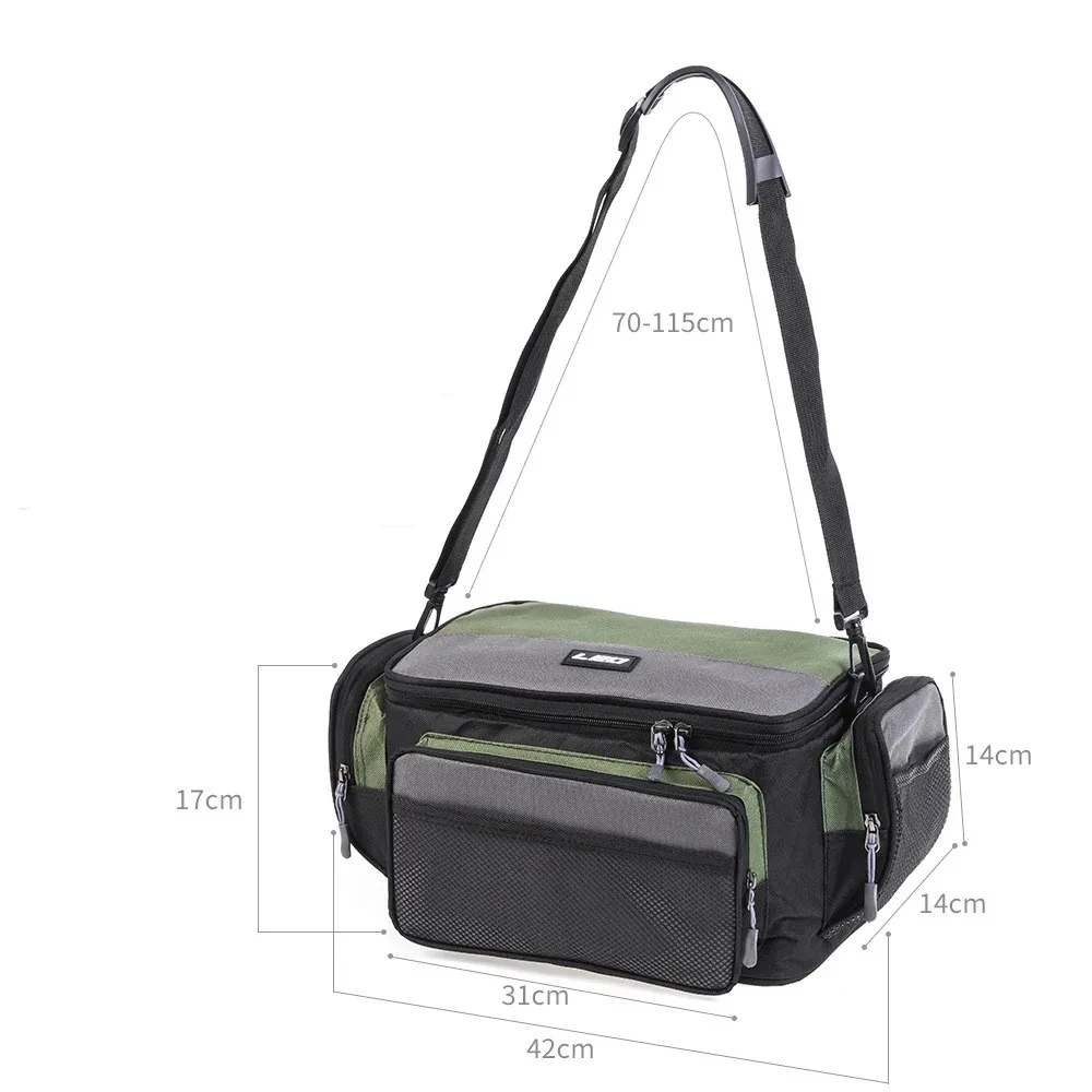 3. Gran de almacenamiento para bolsa carretes, señuelos, alicates, anzuelos, cajas y otros aparejos de pesca.