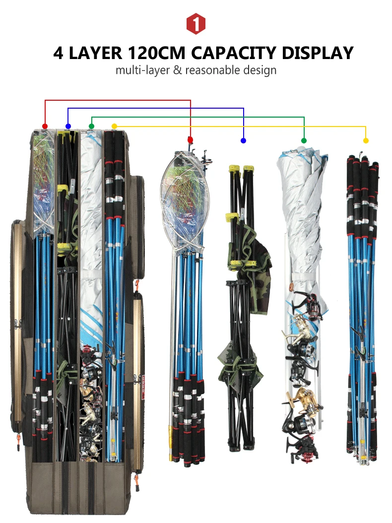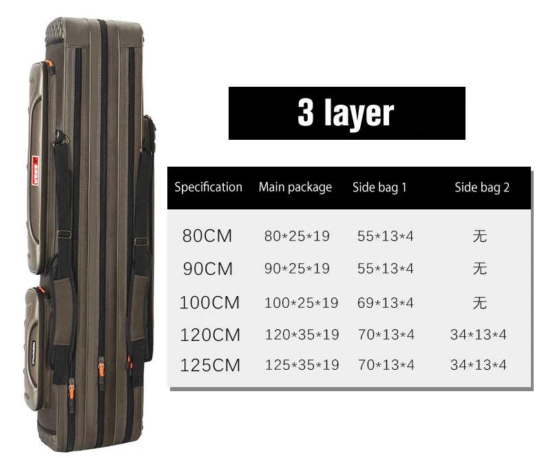 Bolsa de pesca multifuncional para exteriores de 2/3 capas, bolsa de aparejos de pesca impermeable de 80cm, 90cm y 120cm, bolsas gruesas para caña de pescar para hombres XA186G