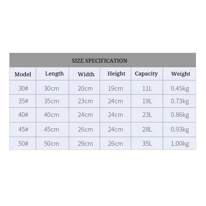 Almacenamiento de agua para acampar, senderismo, también para cebo vivo, herramientas multifuncionales. Bolsillo lateral para bomba de oxígeno, que hará que sus peces respiren, y la tapa de red hace más conveniente al poner los peces dentro y fuera.