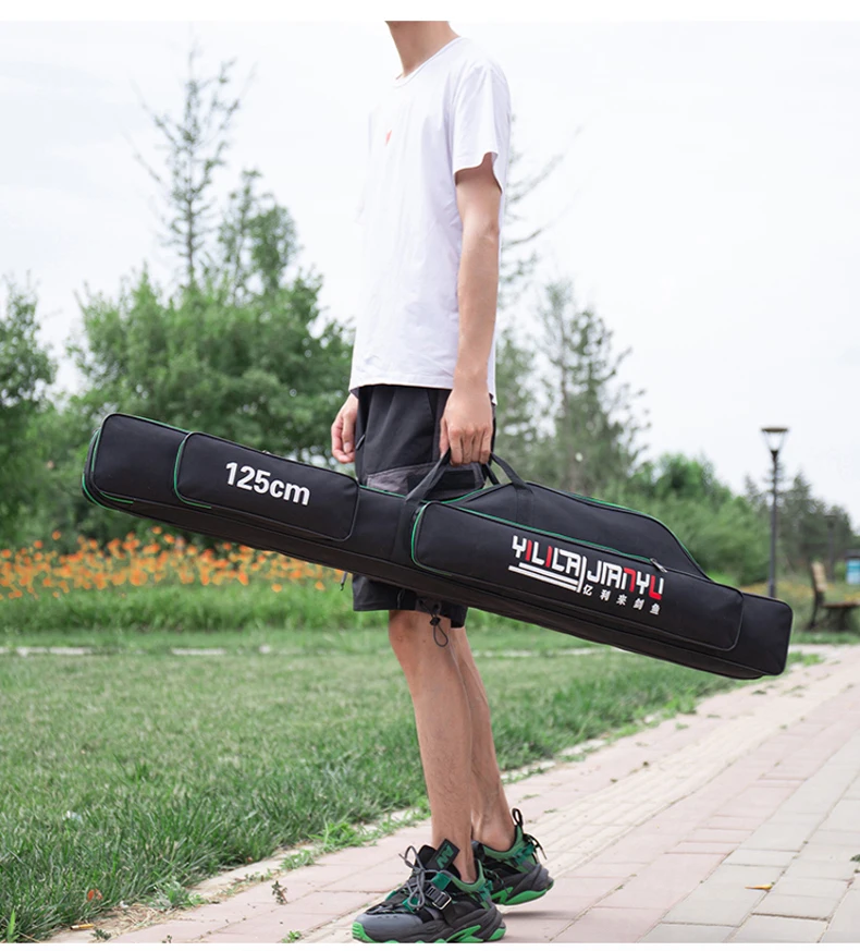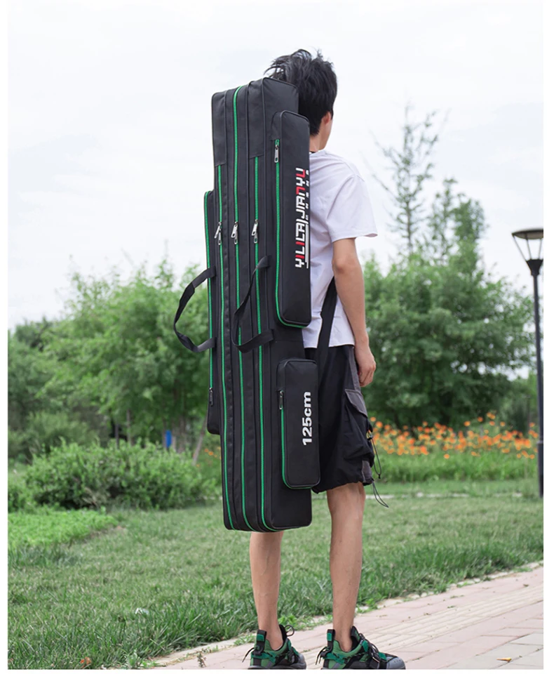 Bolsa de pesca plegable portátil de 3 capas, bolsa de transporte para caña de pescar, carrete, aparejos de pesca, estuche de almacenamiento de viaje, X260G, 120cm/130cm