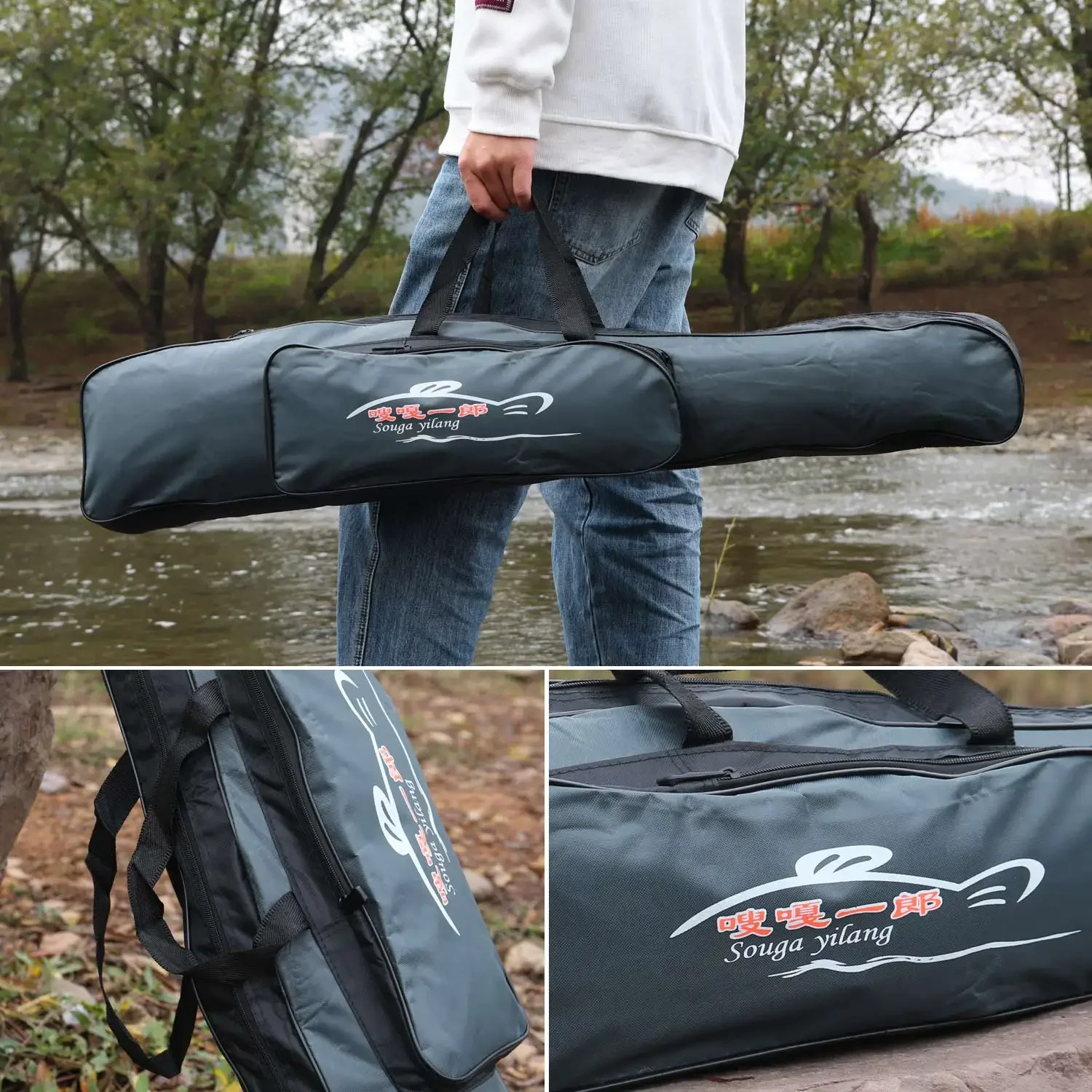 Bolsa de pesca Sougayilang, bolsa de caña de pescar portátil de una sola capa, bolsas de aparejos de pesca de nailon portátiles, bolsa de accesorios de gran capacidad