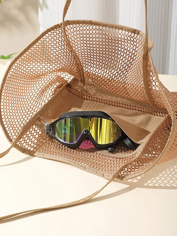 La bolsa de playa puede contener loción protectora solar, trajes de baño y ropa de protección solar, gafas de sol, sombrero de playa expandido o sombrero para el sol, toalla de playa, agua potable, cambio de ropa, medicamento regular de primeros auxilios, juguetes divertidos para jugar con niños, etc.