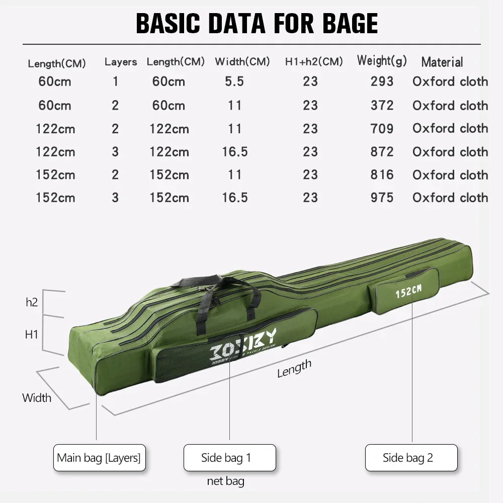 Bolsa plegable portátil para caña de pescar, 1/2/3 capas, 122CM, 152CM, 182CM, estuche de aparejos Oxford, mochila multifuncional impermeable para exteriores
