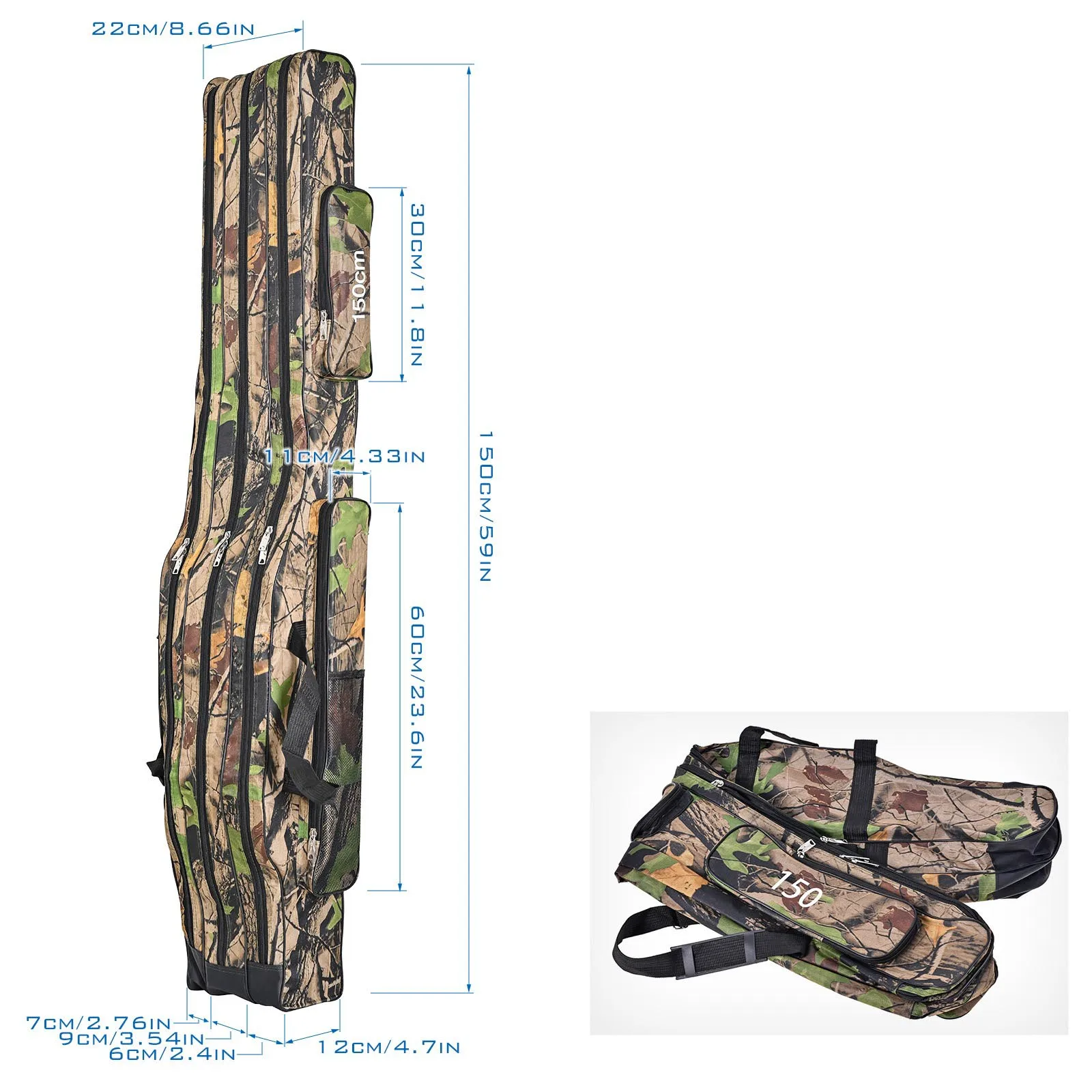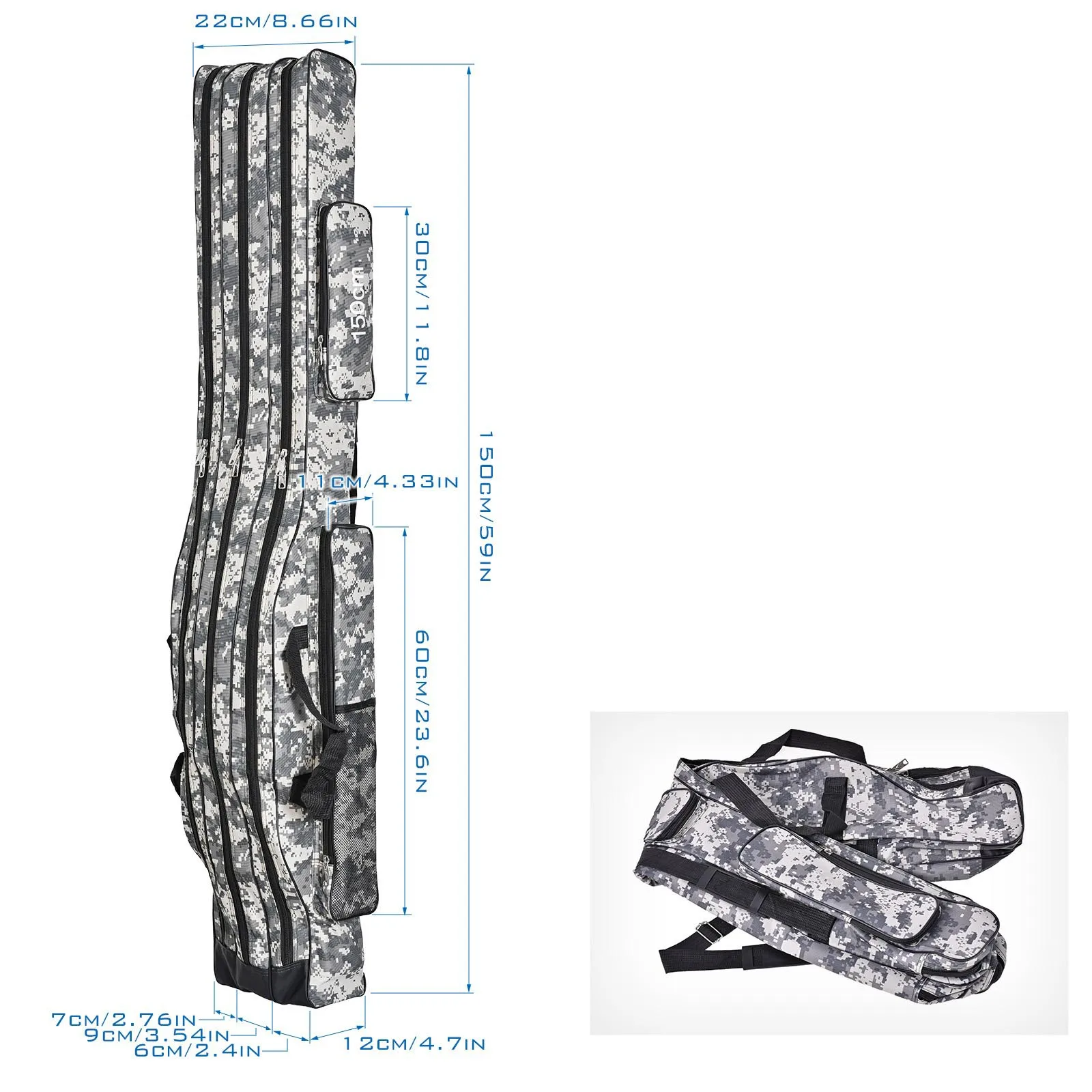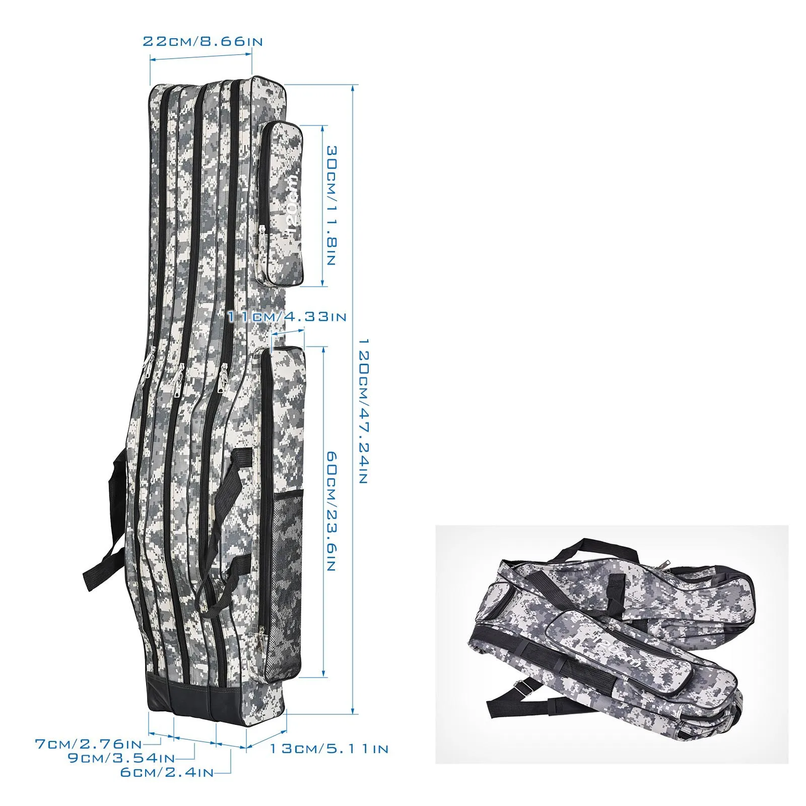 Bolsa plegable de tres capas para caña de pescar, mochila para caña de pescar de 1,2 M, 1,5 M