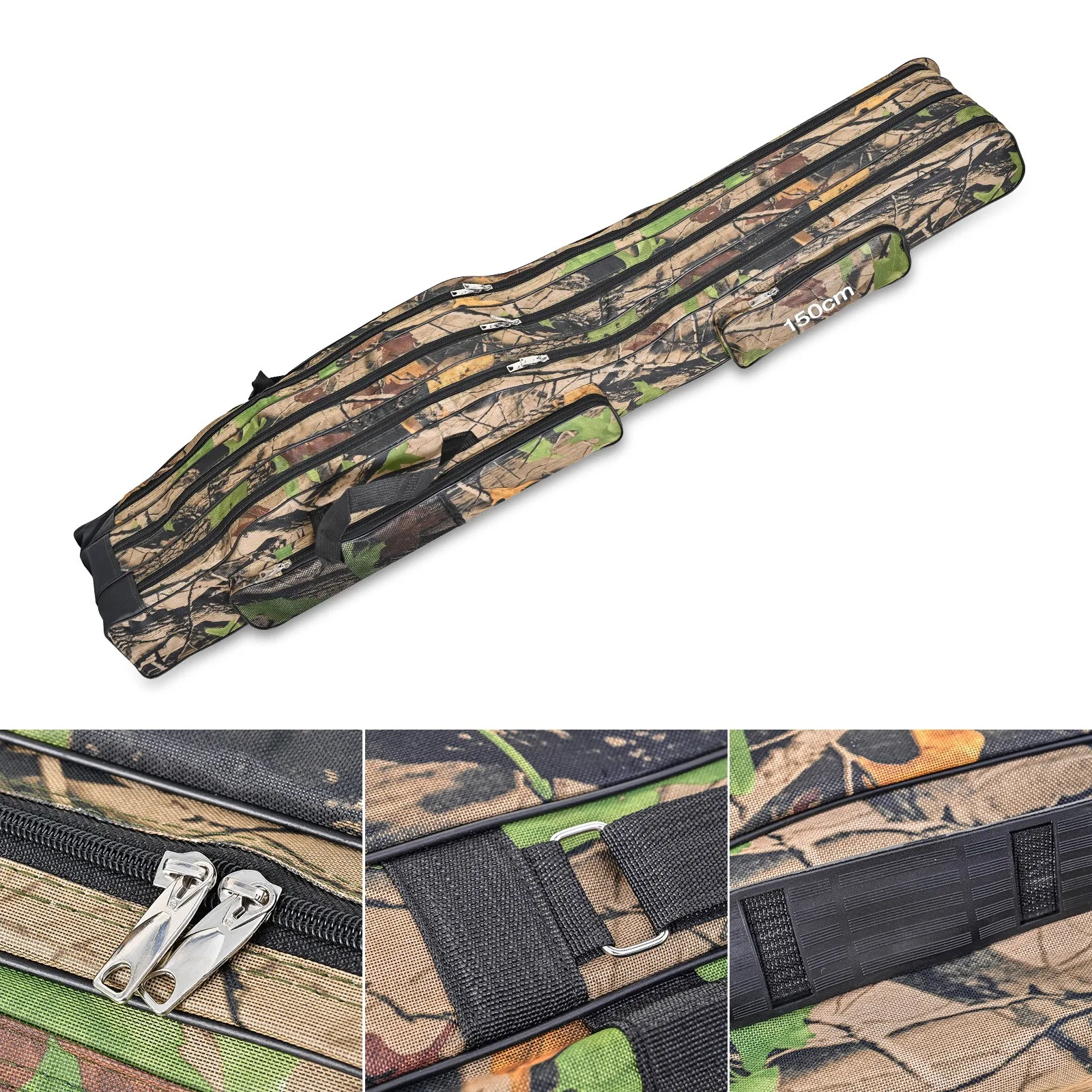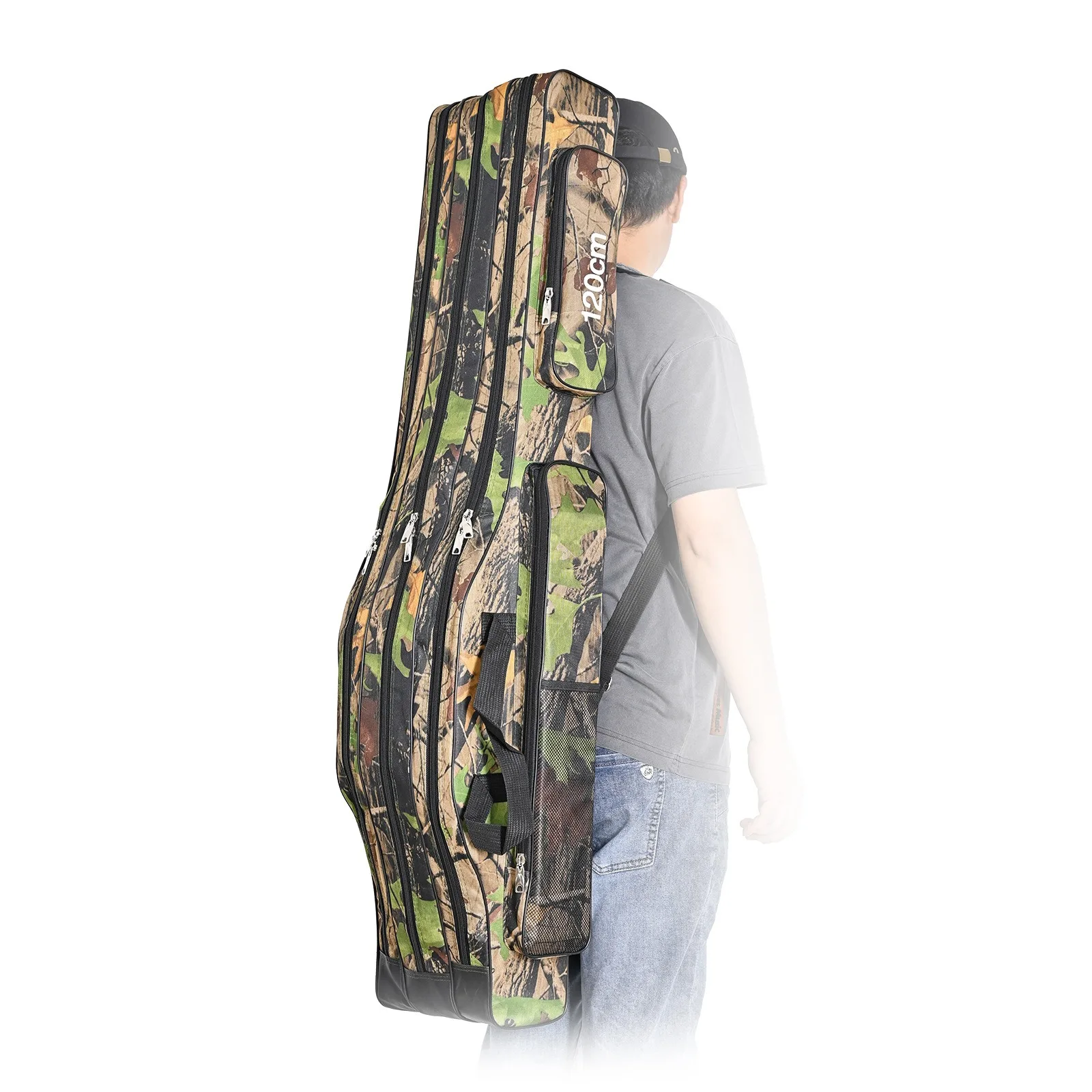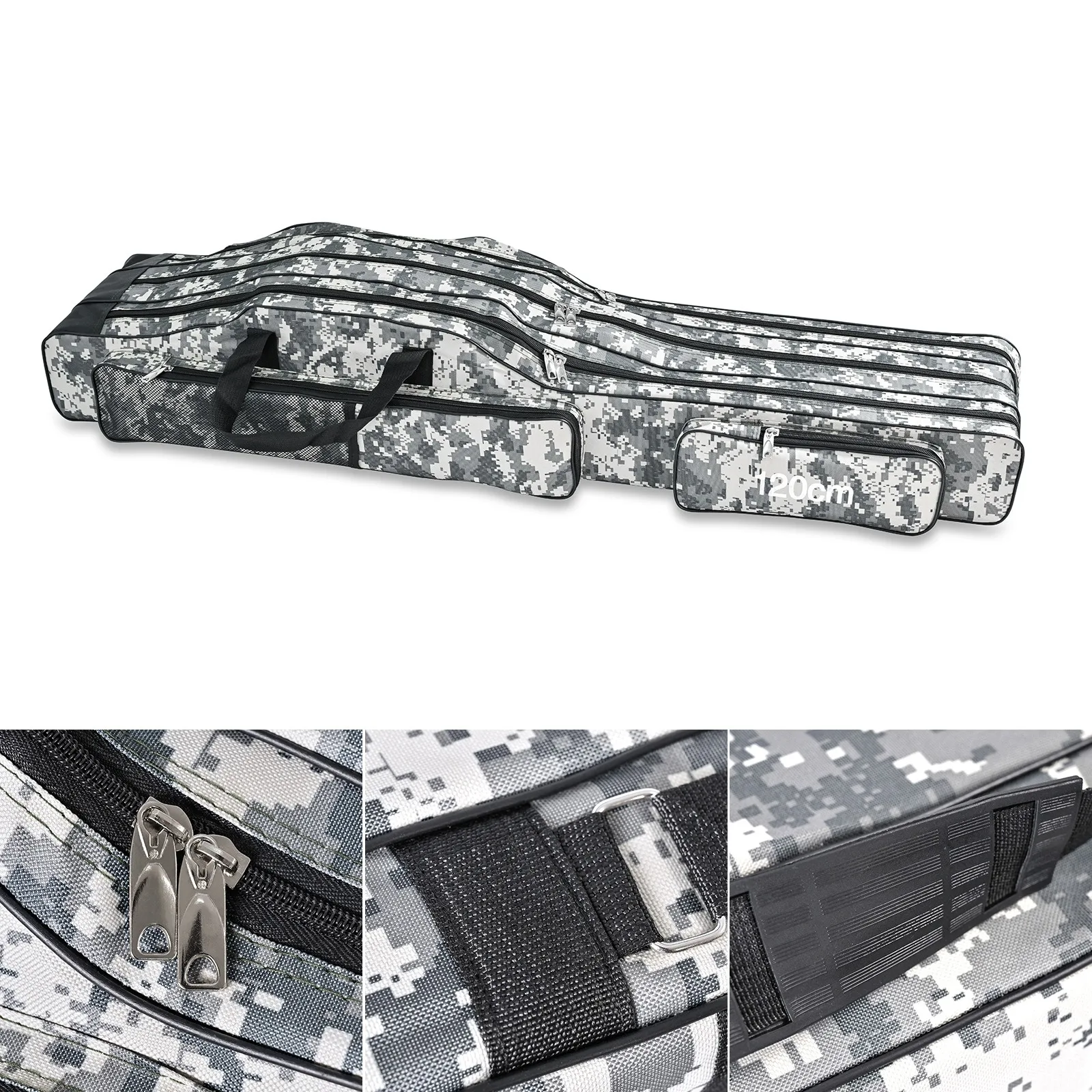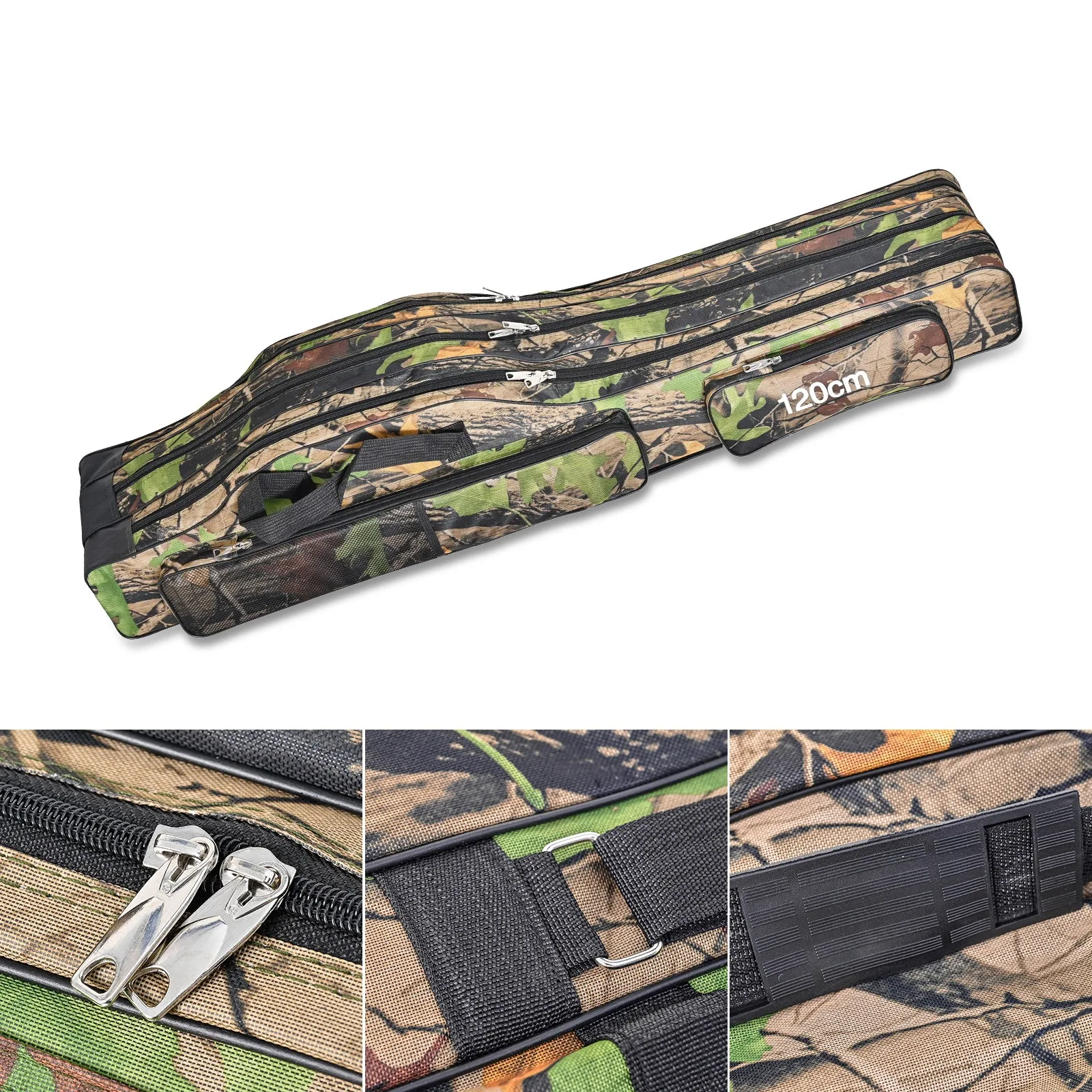 Bolsa plegable de tres capas para caña de pescar, mochila para caña de pescar de 1,2 M, 1,5 M