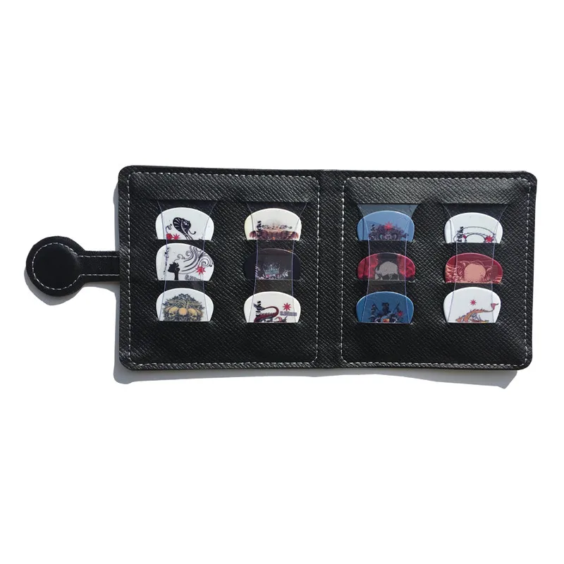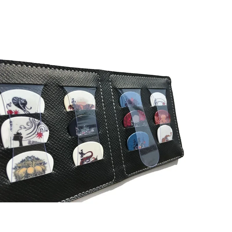 Bolsa de púas de guitarra de PU de 12 agujeros, soporte de cuero negro, billetera triangular, almacenamiento, Mini guitarra eléctrica, bolsa de púas para ukelele