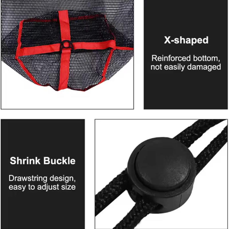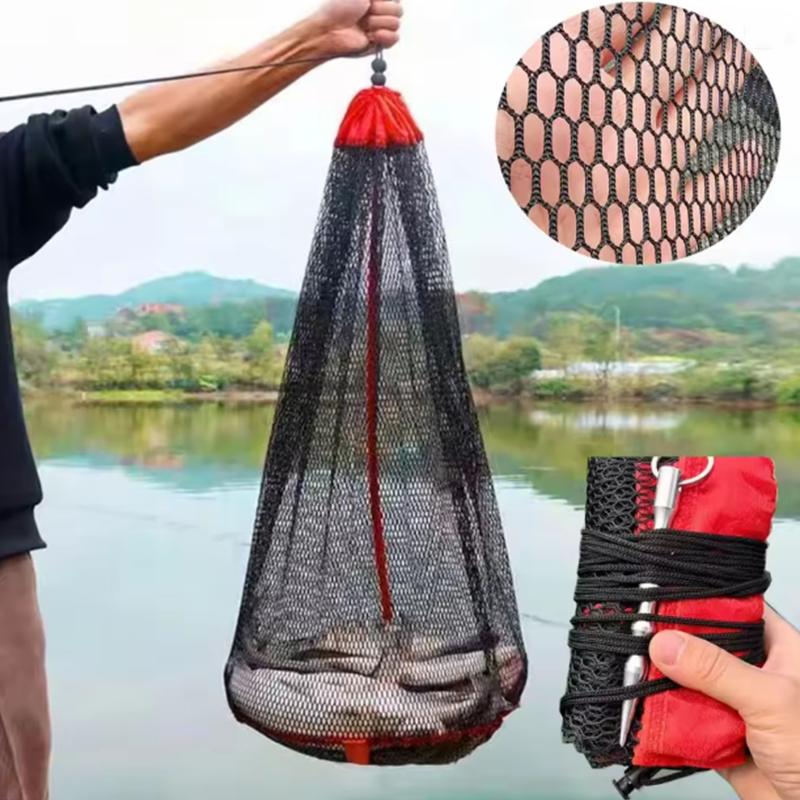 Bolsa de red de pesca plegable, jaula de rejilla pequeña de nailon, paquete de redes para peces, monofilamento de boca, cesta viva para peces, bolsa portátil con cordón de malla