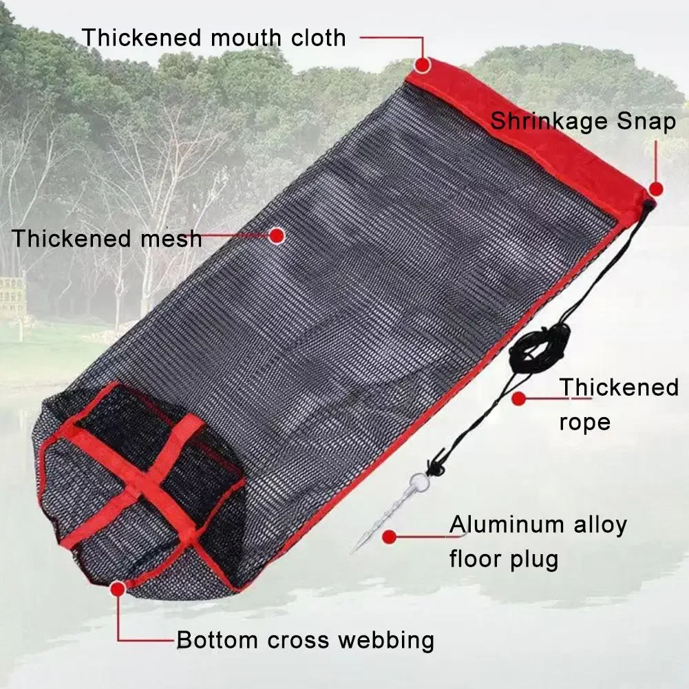 1. Red de pesca portátil con cierre de cordón, ideal para pesca al aire libre.