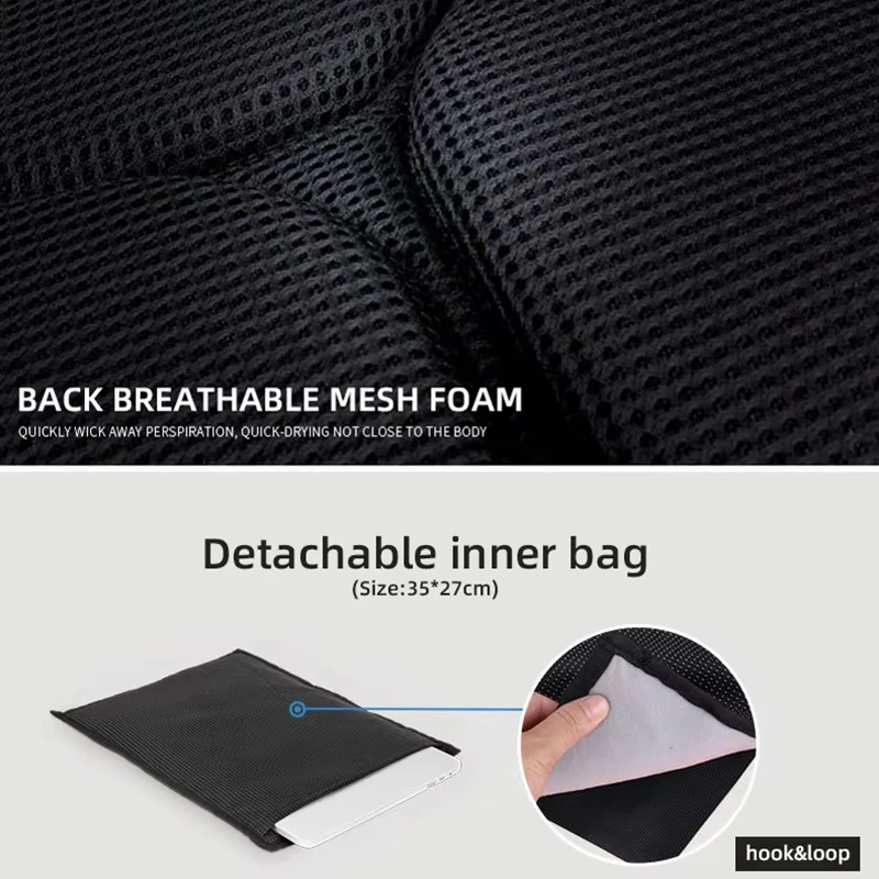 6. Tirantes transpirables y sistema de espalda para mantenerte cómodo durante el viaje