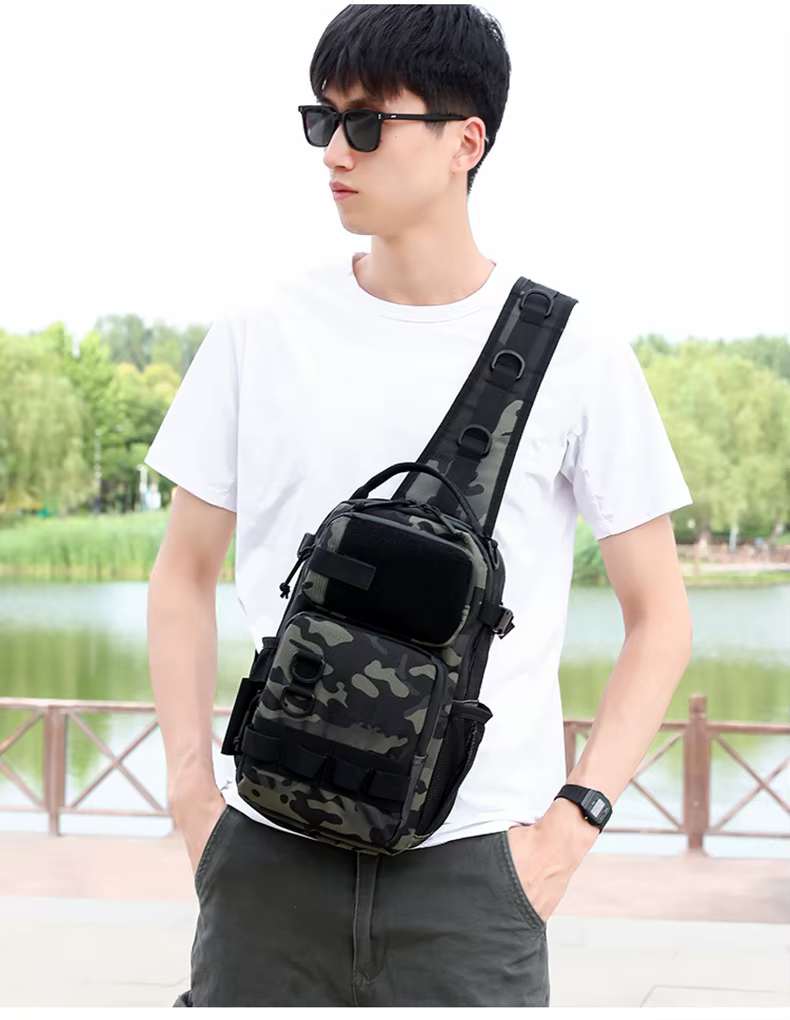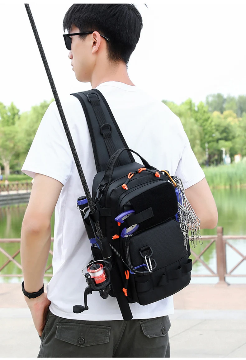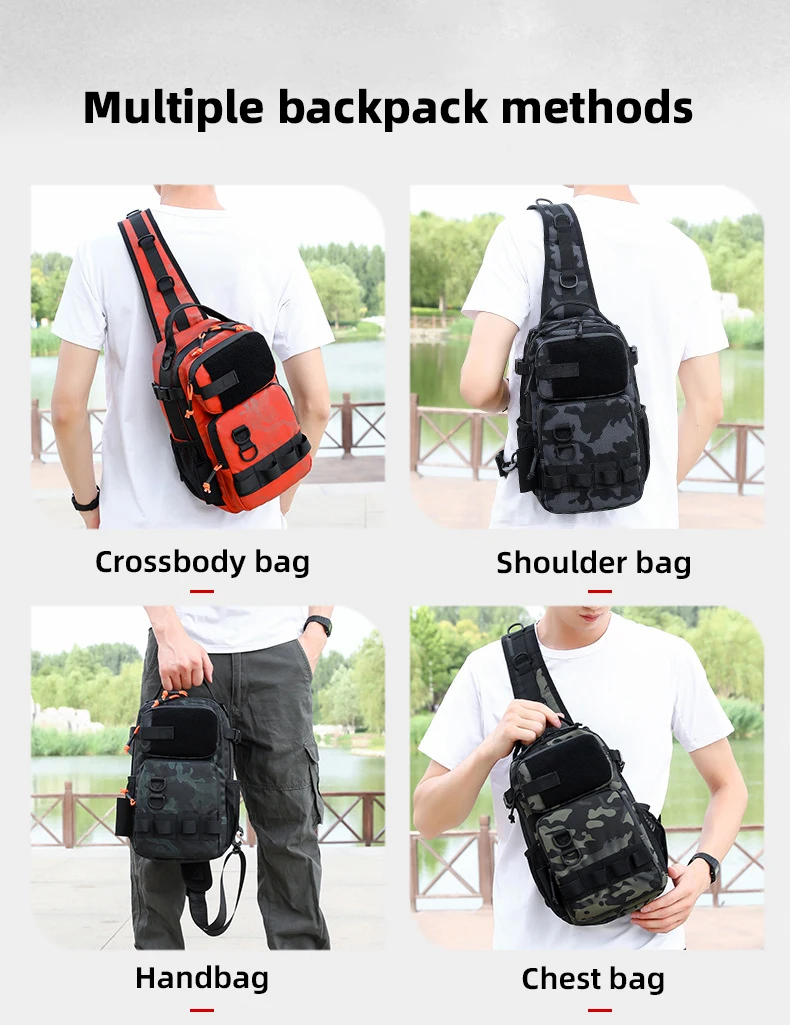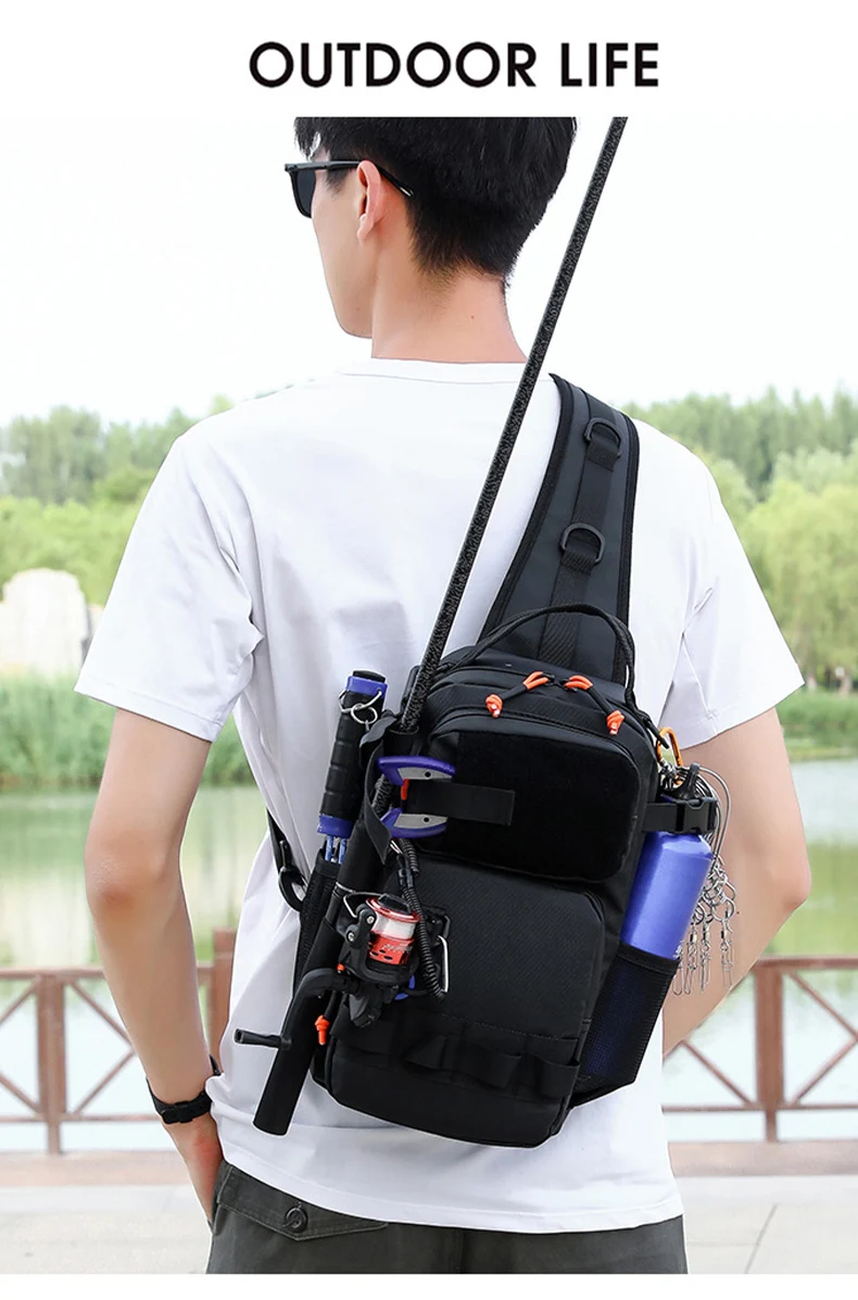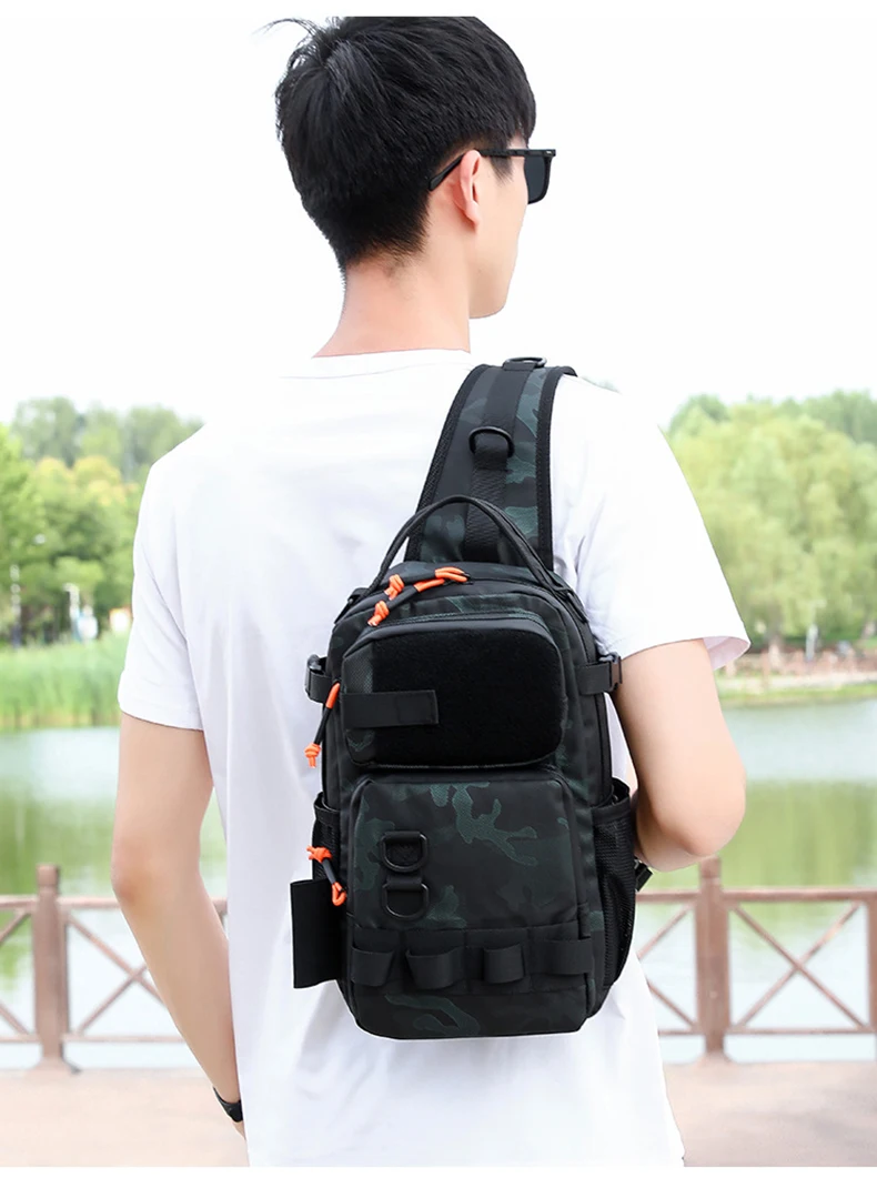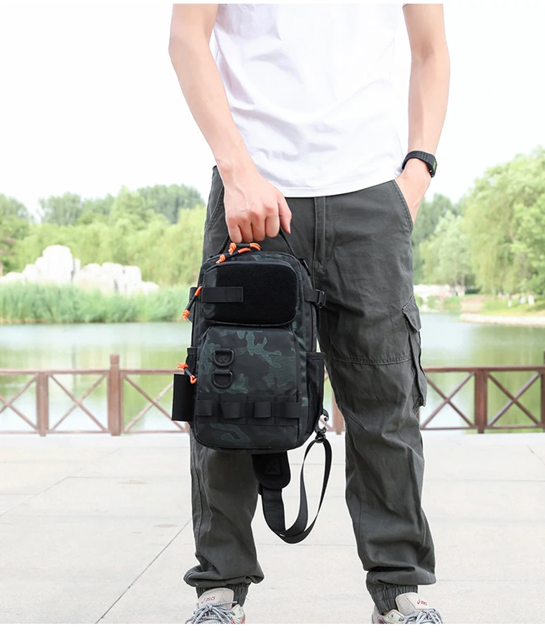 Bolsa de caña de pescar, bolsa de pecho táctica Molle grande para deportes al aire libre, caza, Camping, senderismo, bolsa impermeable, riñonera EDC