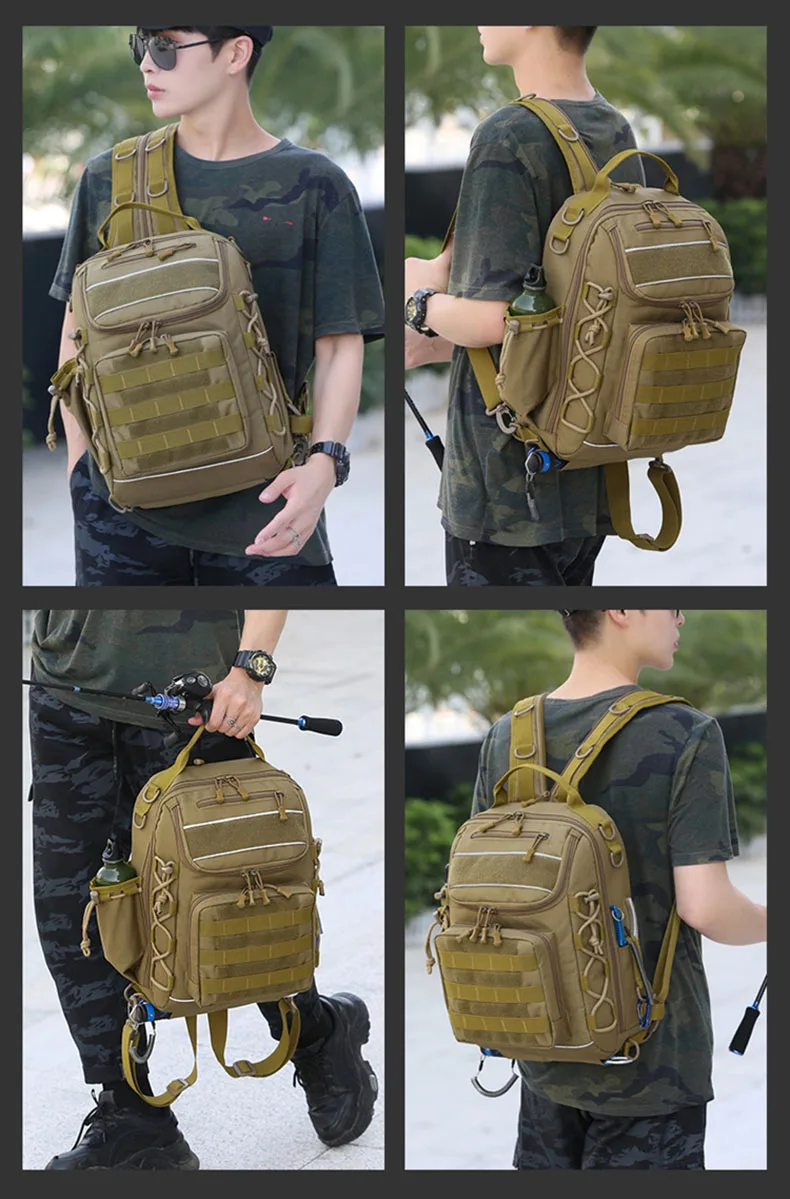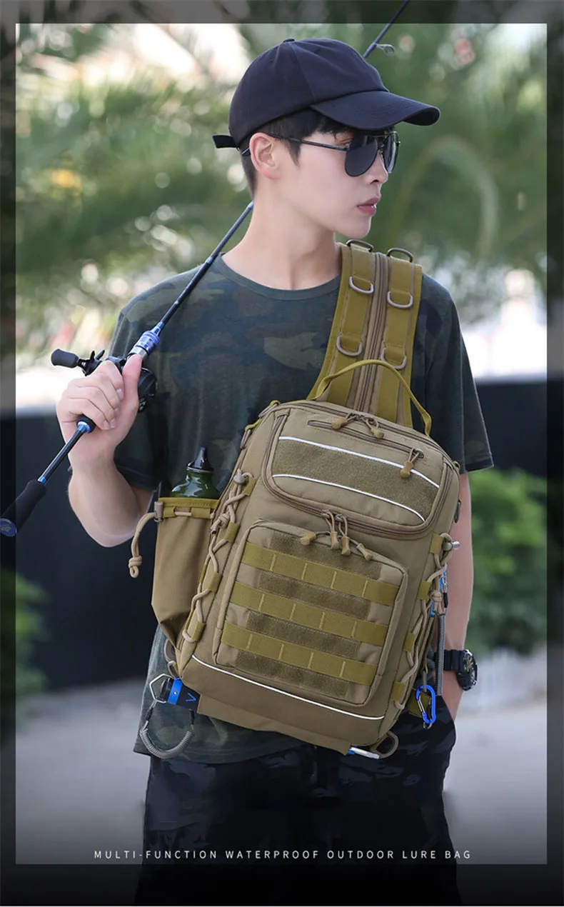 Bolsa de señuelo de pesca para hombre, mochila de un solo hombro, deportes tácticos al aire libre, camuflaje, viaje, montañismo, mochilas pequeñas de viaje para escalar