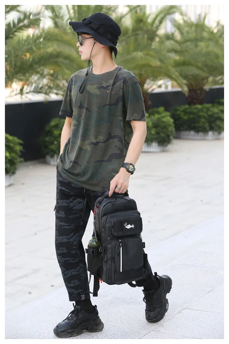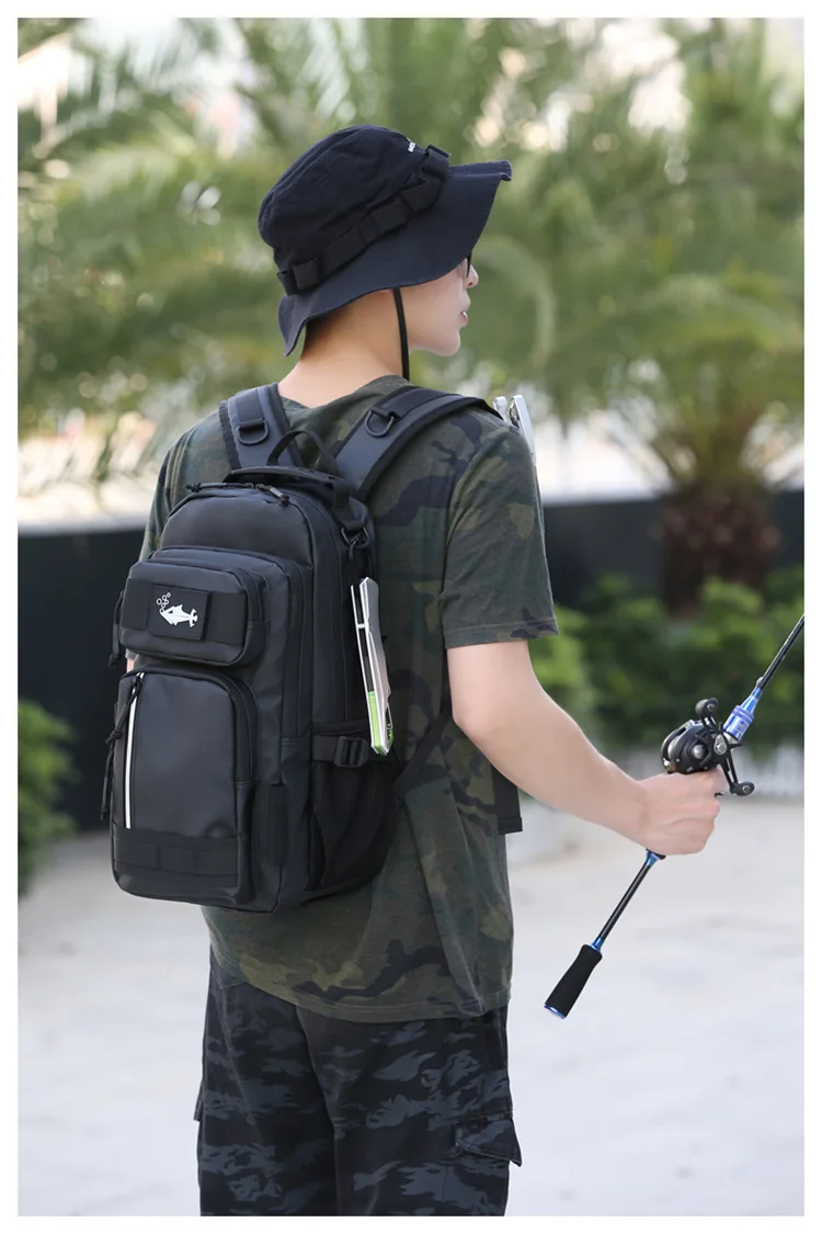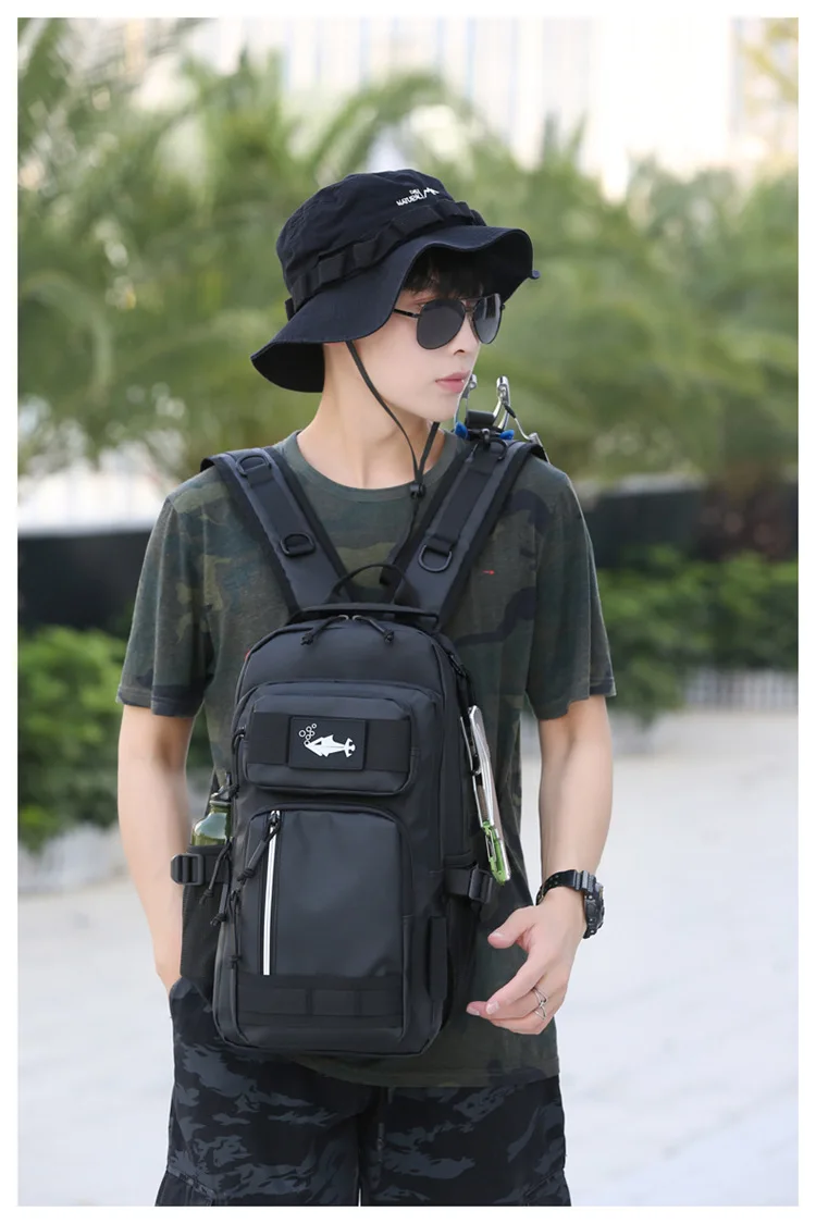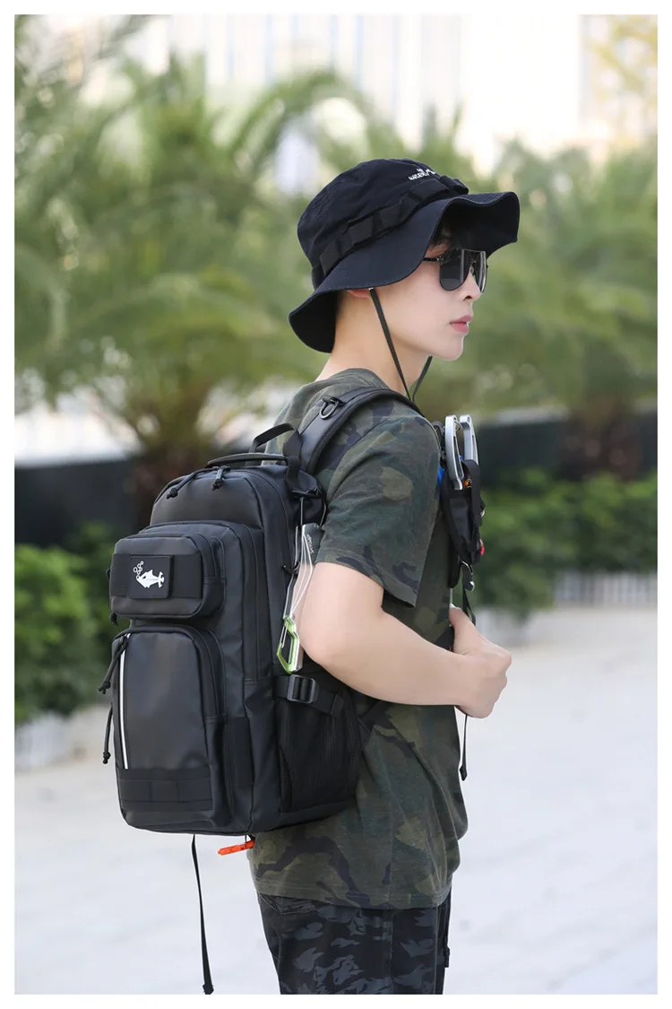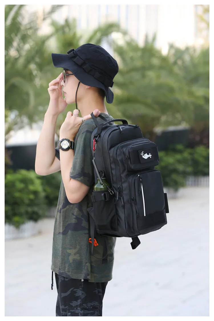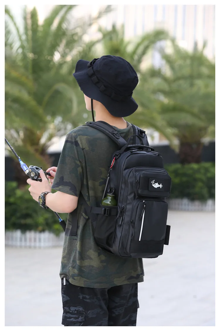 Bolsa de señuelo de pesca con soporte para caña, mochila multifuncional Molle para senderismo, correr al aire libre, bolsa de aparejo para acampar, mochila deportiva para caza