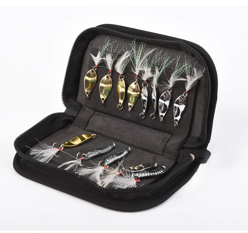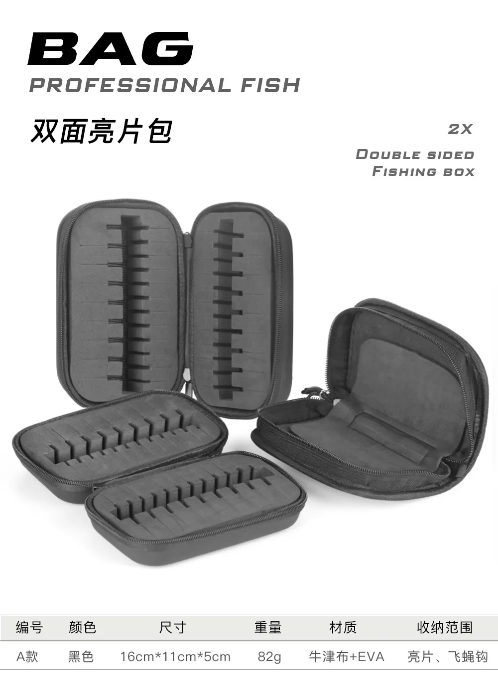 Bolsa para señuelos de pesca, anzuelo con cabeza de anzuelo individual, anzuelos de pesca con mosca, cuchara de doble cara, bolsas para señuelos artificiales, bolsa de almacenamiento dura de PU Oxford