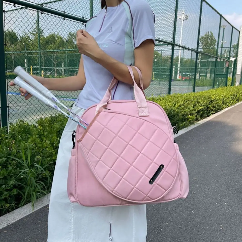 Brand New and High Quality Type: Racket Storage Bag Material: Oxford Cloth Size: 43×37cm(16.93×14.57in) Color: Blue, Black, Beige, Pink, Purple Packaging Includes: 1PC Durable Tennis Bag Feature: 1.Versatile Design: Sports handbag is suitable for a variety of ball sports, including badminton and tennis, it's a versatile choice for all your athletic needs. 2.Large Capacity: Badminton racket bag, ample room accommodates rackets and accessories, keeping your gear organized and ready to go. 3.Premium Material: This tennis crossbody bag is made of reliable oxford cloth, featuring a premium, abrasion and tear resistant construction. 4.Multiple Carrying Option: Racquet bag can be used as a backpack, shoulder bag, or handbag to suit different needs and styles. Tips: 1.Due to the light and monitors effect, colors may have lightly difference. 2.Please allow slightly size errors due to manual measurement. Thank you for your understanding!