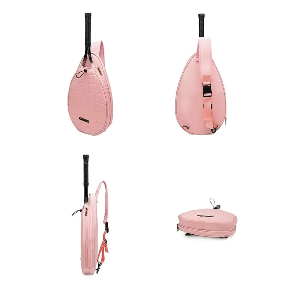 Material: tela impermeable compuesta de poliéster Función de la mochila: un solo hombro Tamaño del producto: 27*6*46cm (10,63*2,36 * 18.11in) Peso del producto: 400g Color del producto: Rosa, púrpura, blanco, Negro Lista de embalaje: 1 bolso bandolera para raqueta