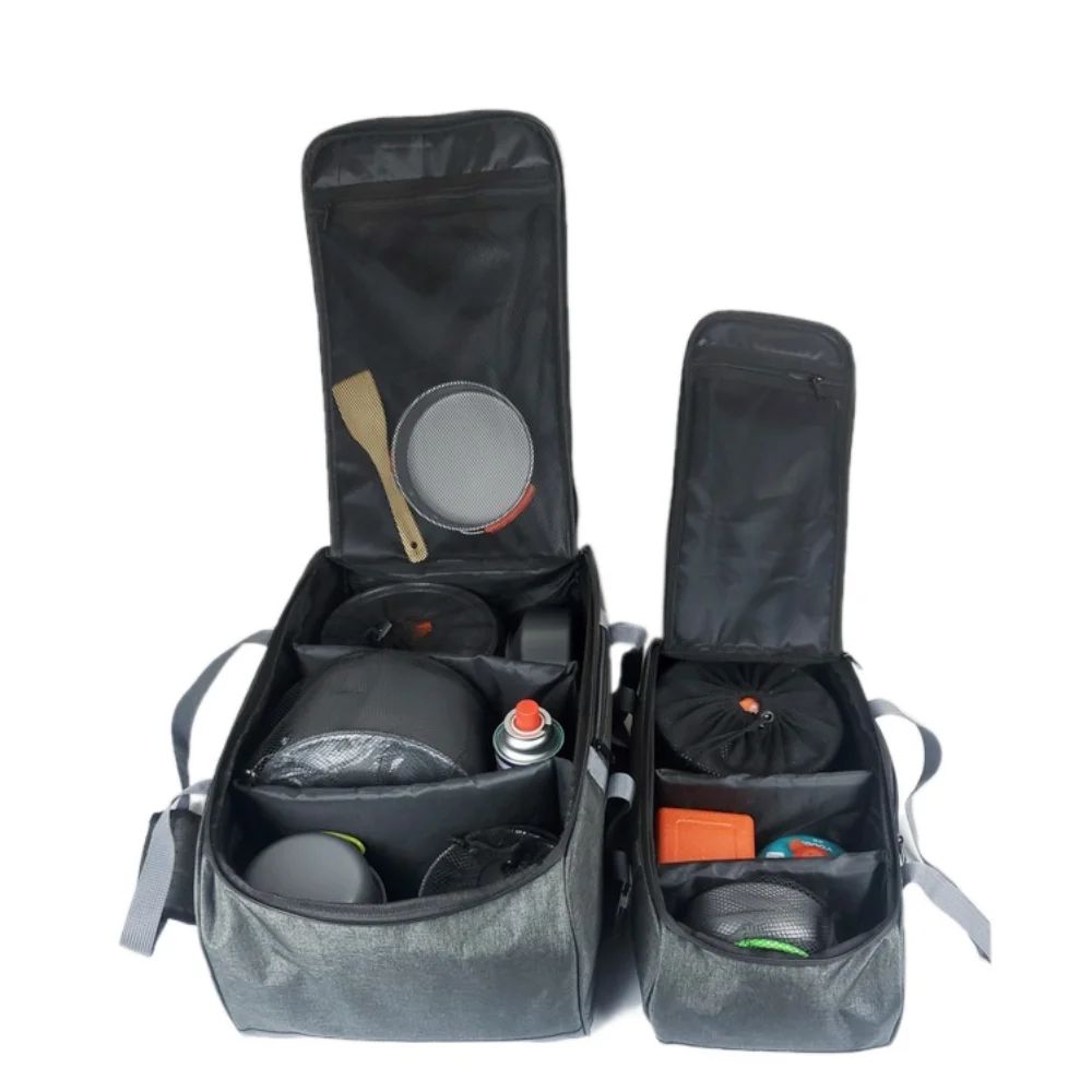 1. **Large Capacity**: This outdoor camping storage bag boasts a large capacity, making it ideal for carrying all your essential items for camping, picnics, or outdoor activities. It can comfortably hold cookware, utensils, lunch boxes, and ground nails, ensuring you have everything you need in one place.