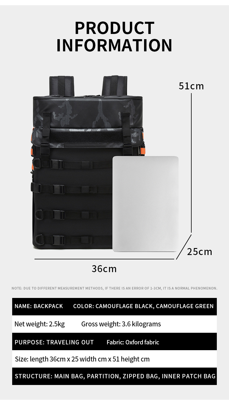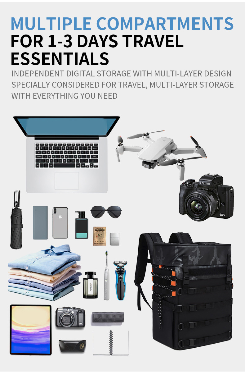 Bolsa de viaje, bolsa para ropa de trabajo al aire libre, mochila de almacenamiento multifuncional de gran capacidad, bolsa para pesca, camping y senderismo