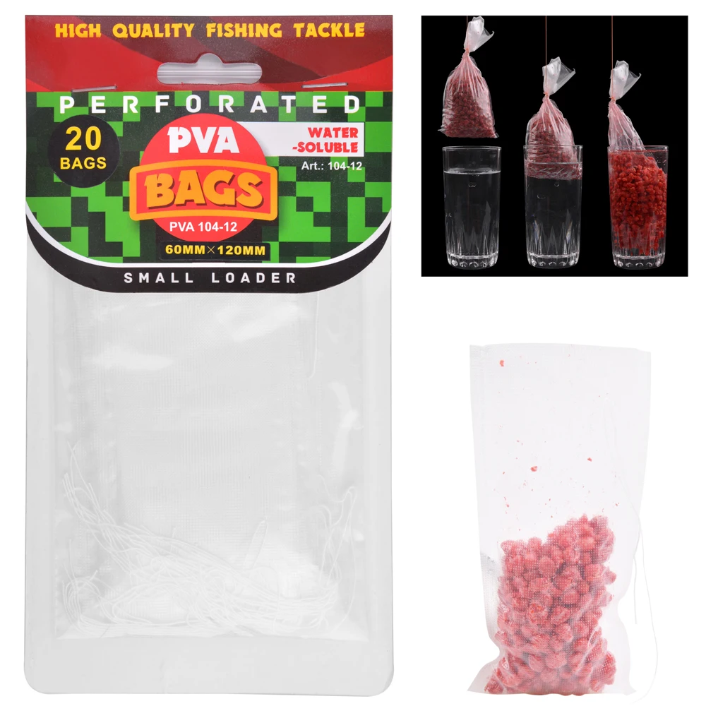 La bolsa de Pva es completamente soluble en agua fría, incluso en agua helada, se puede disolver en poco tiempo. La bolsa Pva no se pegará en el embalaje (a menos que, por supuesto, los moje). La mejor herramienta para la pesca de carpa, se hunde rápidamente hasta el lago.