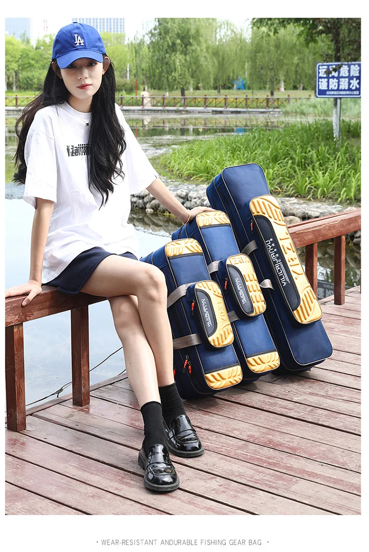 Bolsas de almacenamiento para caña de pescar, 55/65/75/85CM, herramientas para caña de pescar, bolsa protectora portátil multifuncional impermeable, portador de peces de 2 capas