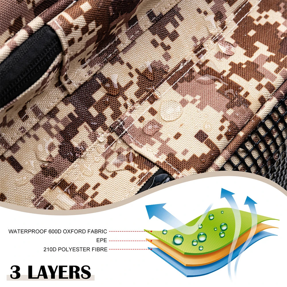 6.Diseño de múltiples bolsillos, 14 bolsillos de almacenamiento de aparejos de pesca internos y externos para un almacenamiento ordenado