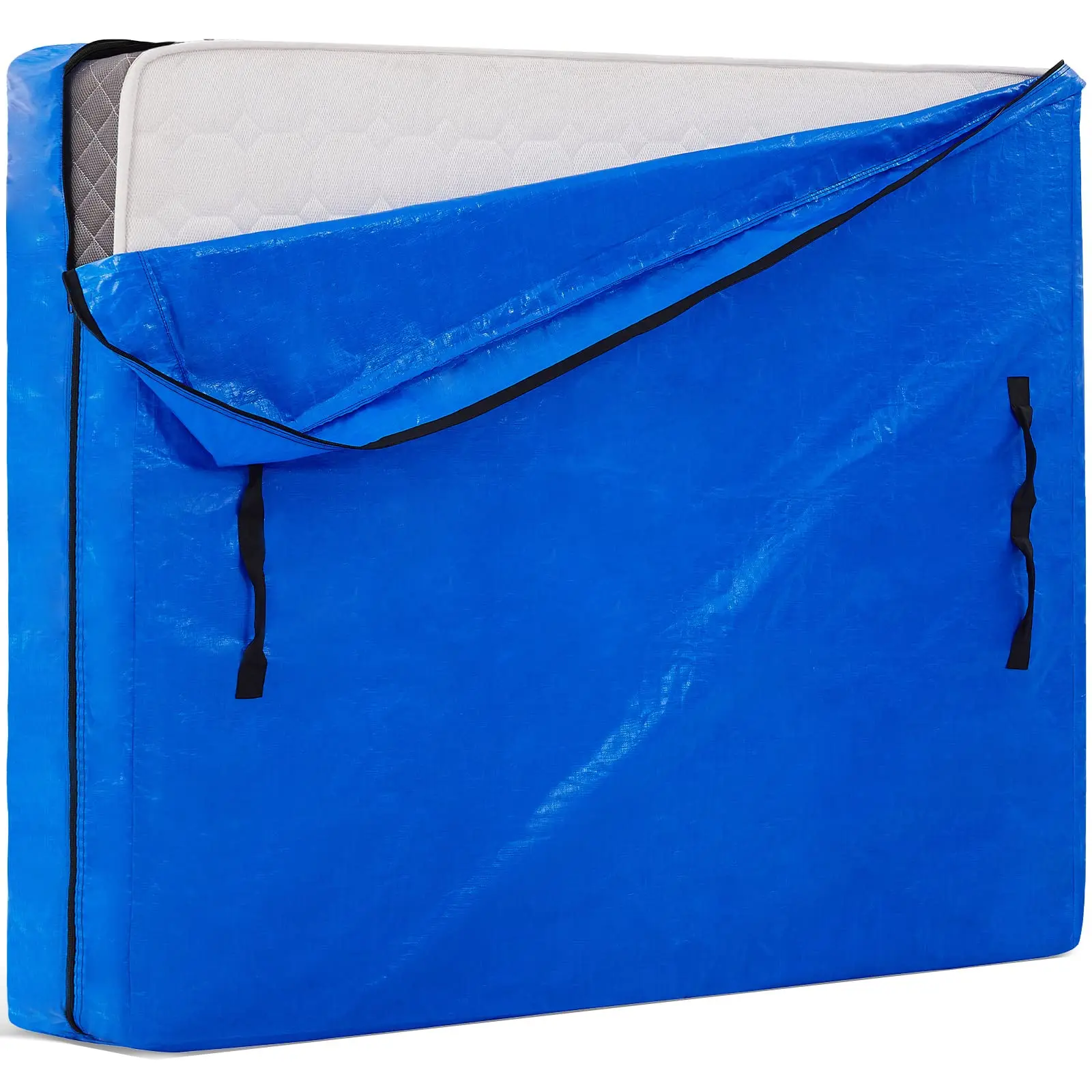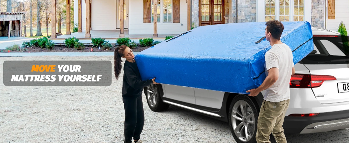 CUBIERTA DE COLCHÓN RING PARA MOVER Uno de los elementos esenciales de su casa en movimiento, la funda de colchón king size de calidad profesional para moverse garantizará que su colchón se mantenga protegido de líquidos, polvo, suciedad y olores en todo momento.BOLSA DE COLCHÓN DE TARP DE GRADO PROFESIONAL Y PESADO CON Cremallera A diferencia de otras marcas, las bolsas de almacenamiento de colchones utilizan material de lona de 150 g/m2 de la más alta calidad y un diseño con cremallera resistente para garantizar que su colchón tamaño King permanezca protegido tanto en el almacenamiento como mientras se mueve la casa.¡Incluso incluimos espacio adicional para almohadas y ropa de cama para ayudarte a aprovechar al máximo tu!8 ASAS DE FÁCIL AGARRAR Las 8 asas de fácil agarre de la bolsa de colchón con tejido de doble resistencia significan que la funda de plástico para colchón es fácil de agarrar con un colchón de tamaño king en el interior esencial para el transporte fácil y seguro de su colchón en las escaleras y en espacios reducidos.¡Incluso se puede utilizar con una sola persona!La apertura extra ancha de la funda significa que su colchón también es fácil de guardar, con una cremallera resistente para una máxima protección.REUTILIZABLES De alta calidad y duraderas, los profesionales confian en las bolsas de almacenamiento de colchones para que las utilicen una y otra vez.Ya sea que esté realizando múltiples mudanzas en el hogar o buscando una solución de almacenamiento a largo plazo que le dure, las bolsas de colchón para moverse y almacenar están aquí para ayudarlo.BOLSA PARA COLCHÓN DE 3 TAMAÑOS: nuestra bolsa de almacenamiento para colchones King está diseñada para adaptarse a todas las variaciones de colchones de tamaño King, con 8 asas resistentes y de fácil agarre y un diseño con cremallera para sellar.Tamaño del rey: 208X200X38CMTamaño de la Reina: 208X160X38CMTamaño completo: 196X145X38CM