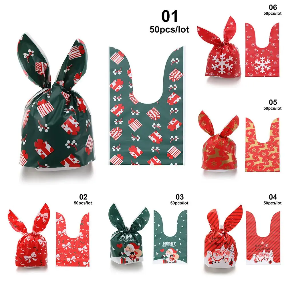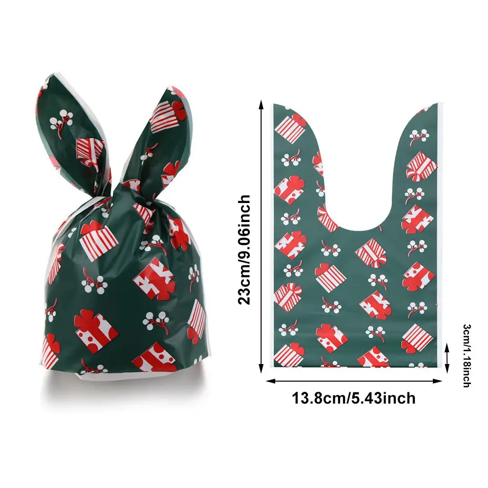 Adecuado para la temporada navideña, use bolsas de regalo de bricolaje, bolsas de dulces, bolsas de chocolates, bolsas de galletas, pequeños regalos y joyas, y otras golosinas. Nuevo y de alta calidad. Tipo: bolsas de dulces. Material: plástico. Tamaño: como muestra la imagen. Forma: Orejas de conejo bonitas. El paquete incluye: Bolsa de regalo de Navidad de 50, (debido a los puntos manuales, por favor, permita 1-2 errores) Nota: el disparo de luz y las diferentes pantallas pueden hacer que el color del artículo en la imagen sea un poco diferente del real. El error de medición permitido es +/- 1-3cm.