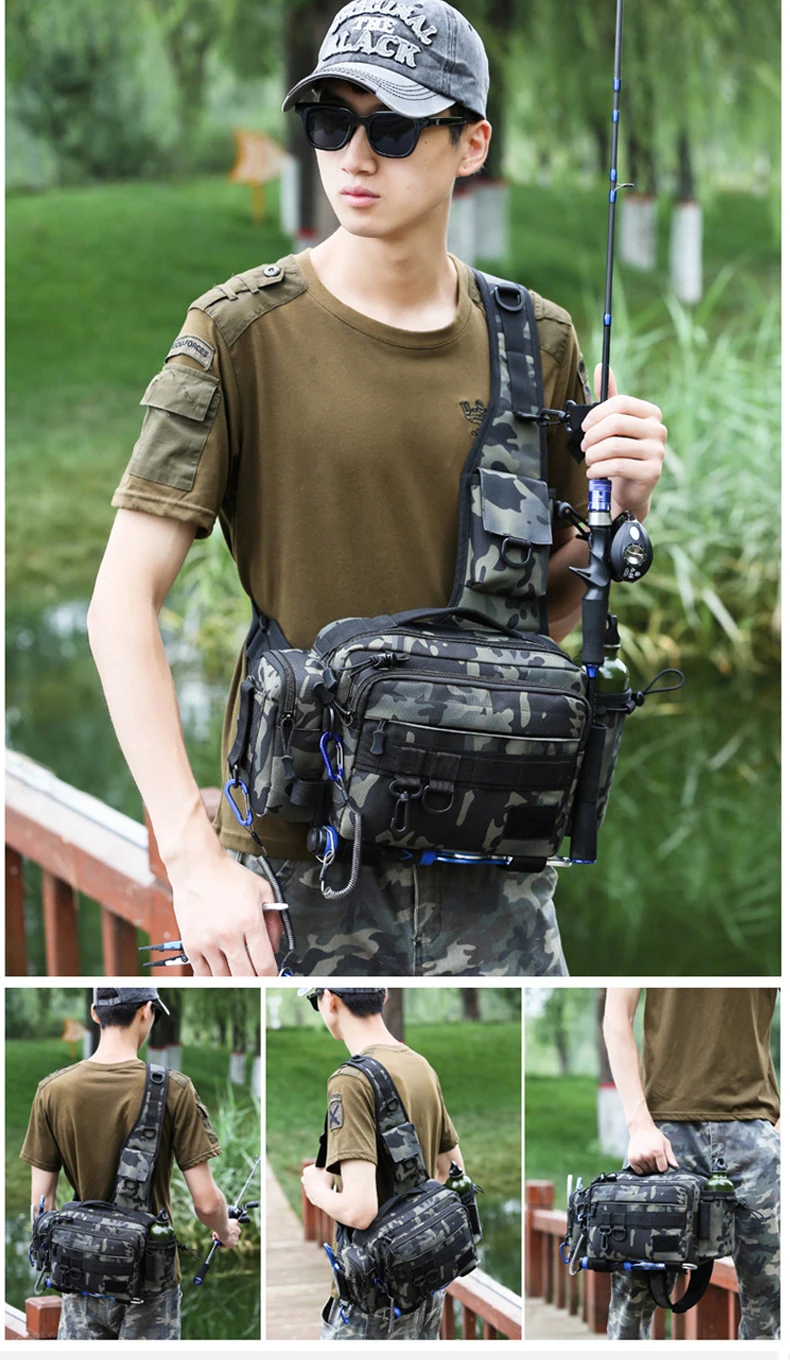 Bolsas multifuncionales para aparejos de pesca, bandolera de un solo hombro, riñonera, señuelos de peces, equipo de almacenamiento de utilidad, bolsa de pesca X232G