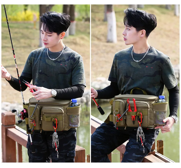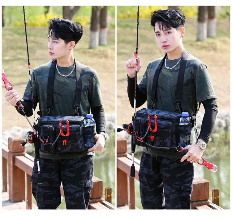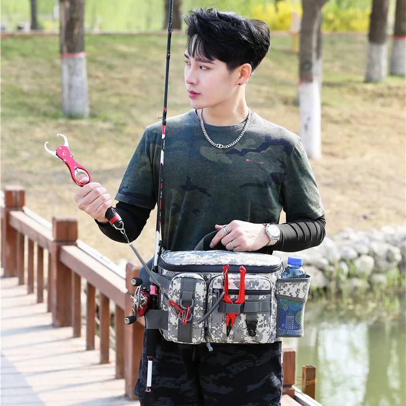 Bolsas multifuncionales para aparejos de pesca, bolsa de almacenamiento de señuelos, bolso de hombro individual, riñonera, mochila de almacenamiento al aire libre para peces, bolsa de pesca