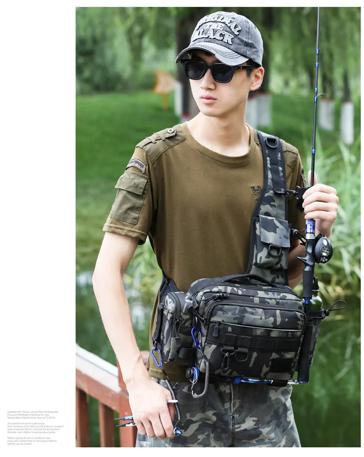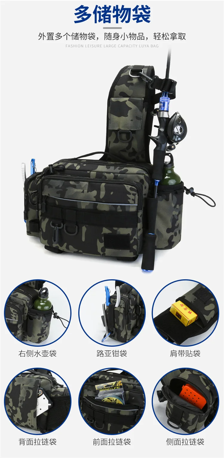 Bolsas multifuncionales de nailon impermeables para aparejos de pesca, bandolera de un solo hombro, riñonera para peces, almacenamiento al aire libre, bolsa de pesca