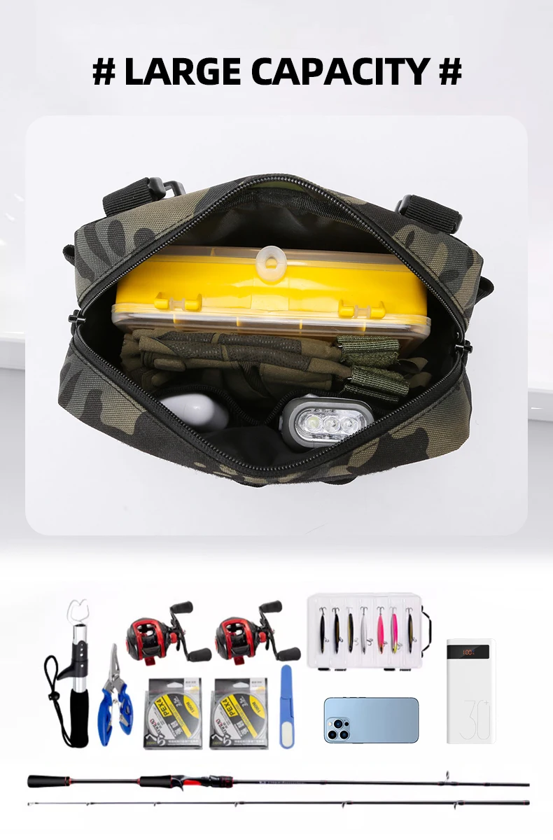Bolsas para aparejos de pesca, riñonera, Señuelos de Pesca, caja de línea, accesorios de almacenamiento de utilidad, bandolera de hombro para acampar al aire libre