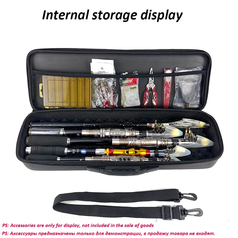 1. El espacioso compartimento principal almacena y protege la caña de pescar, el carrete y la caja de aparejos, etc.