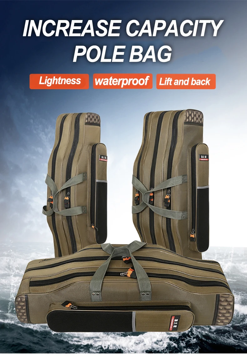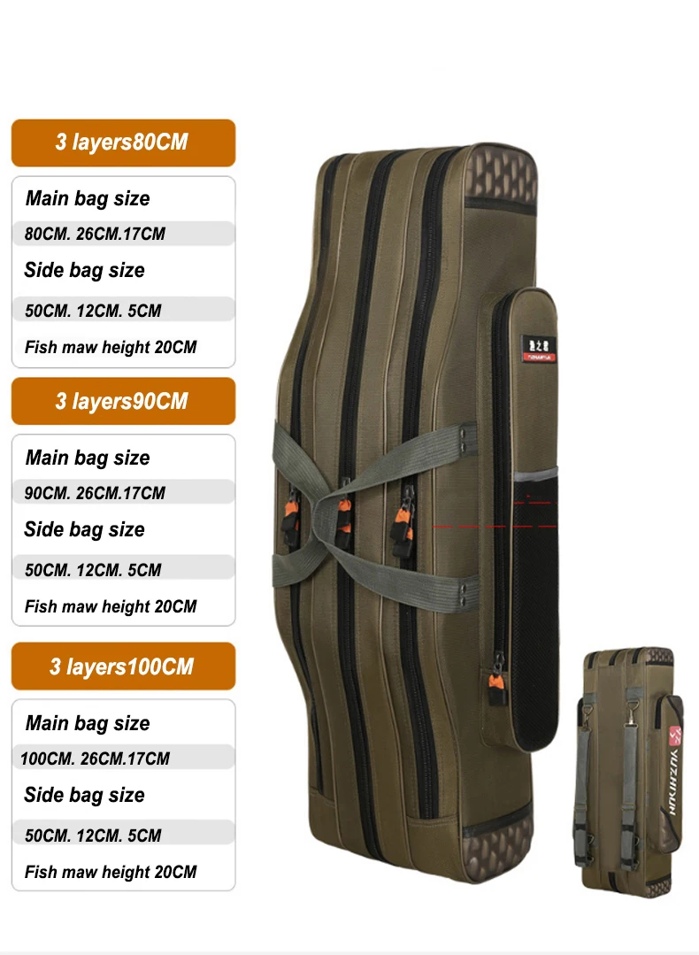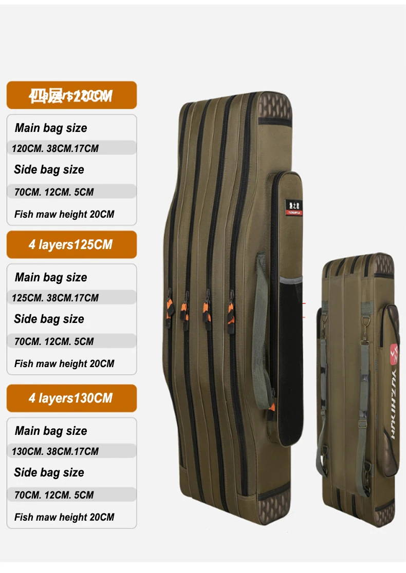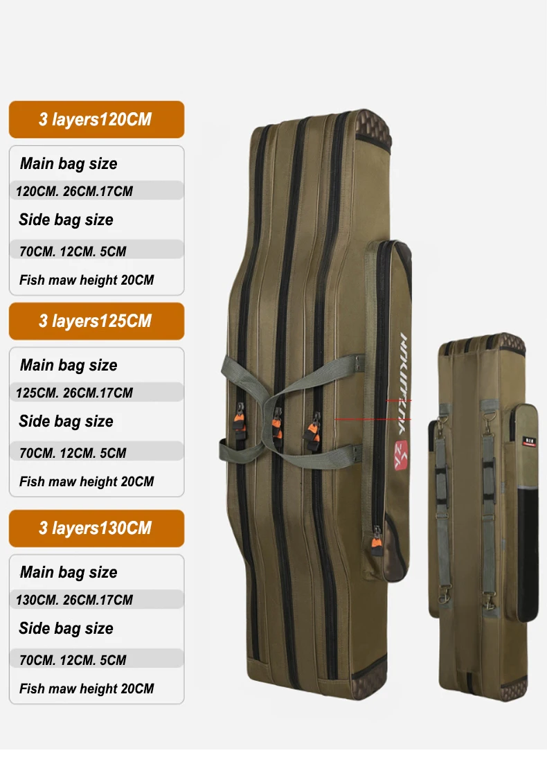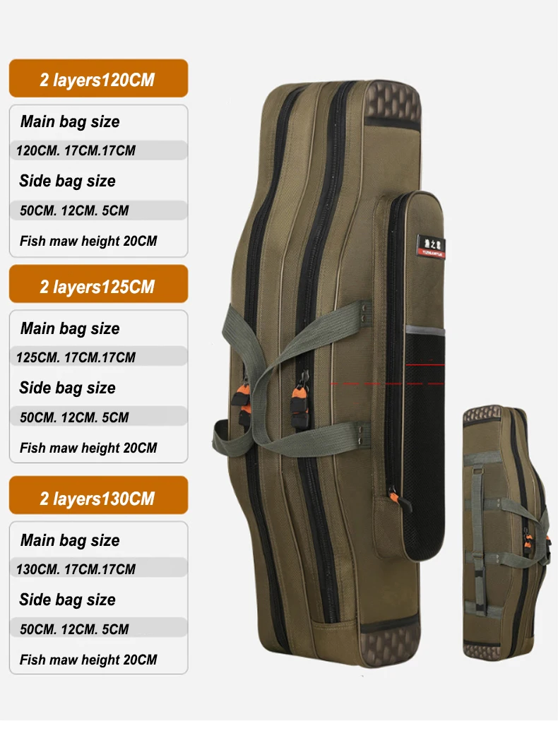 Bolsas de pesca gruesas de tres capas, bolsa de aparejos de caña de pescar de gran capacidad, 100/120/130cm con bolsa lateral de red, accesorio de pesca X306G