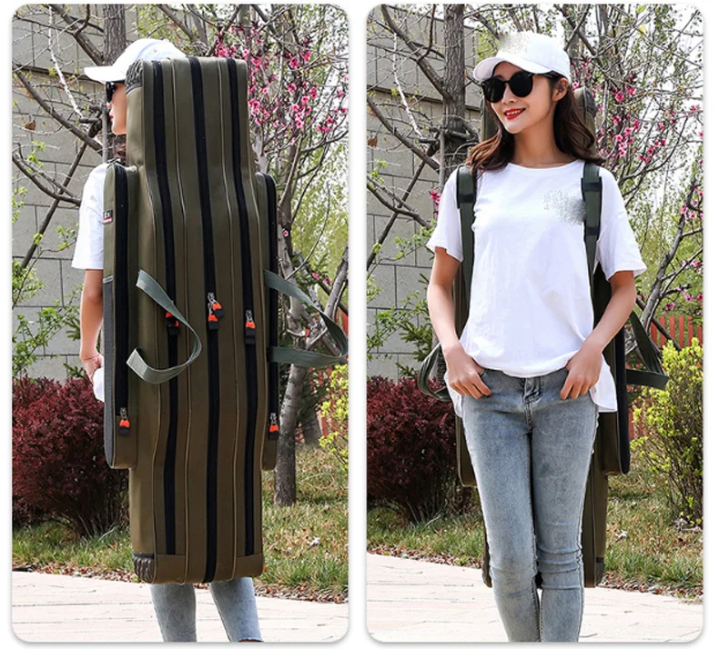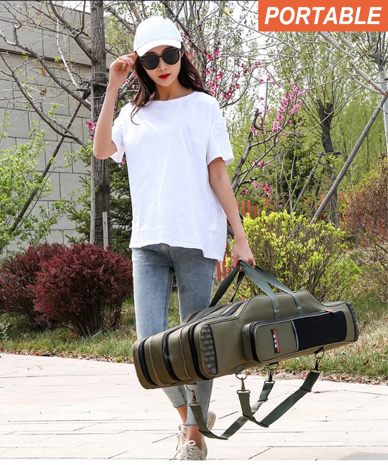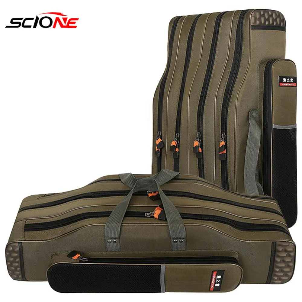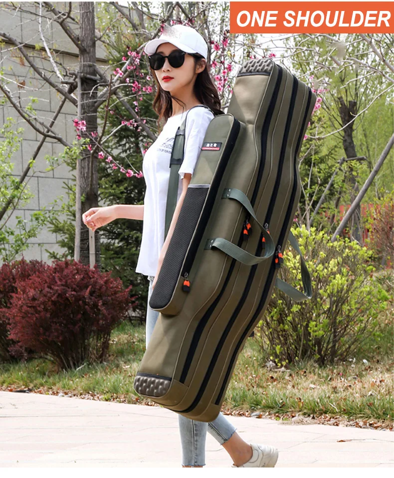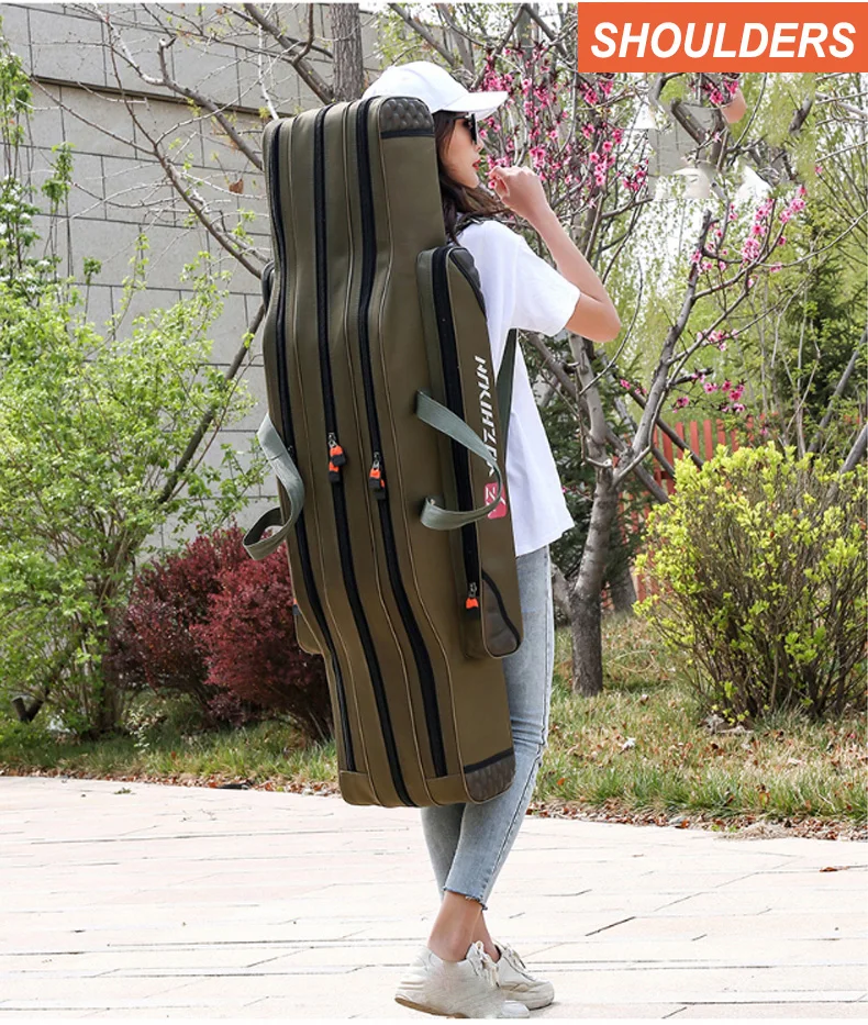 Bolsas de pesca gruesas de tres capas, bolsa de aparejos de caña de pescar de gran capacidad, 100/120/130cm con bolsa lateral de red, accesorio de pesca X306G