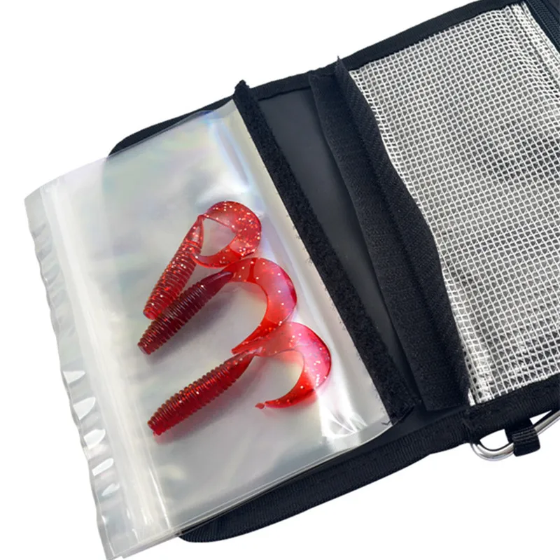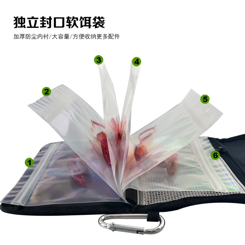 Bolsas de pesca portátiles con señuelos blandos, bolsa de lona impermeable con lentejuelas, bolsa de cebo, bolsa de aparejos, bolsas de cebos blandos, bolsa de pesca plegable