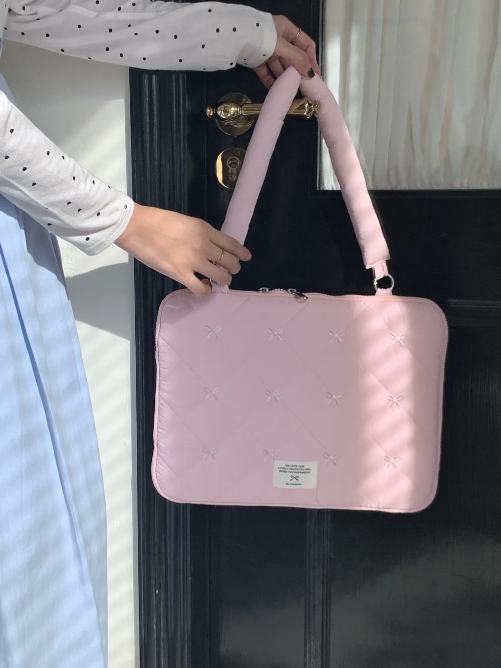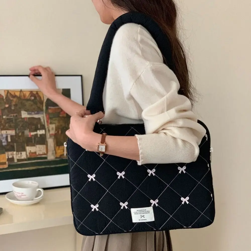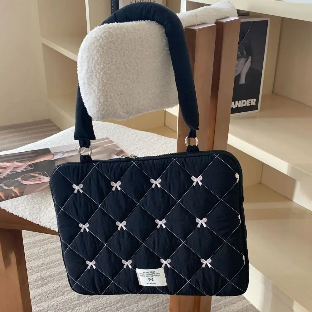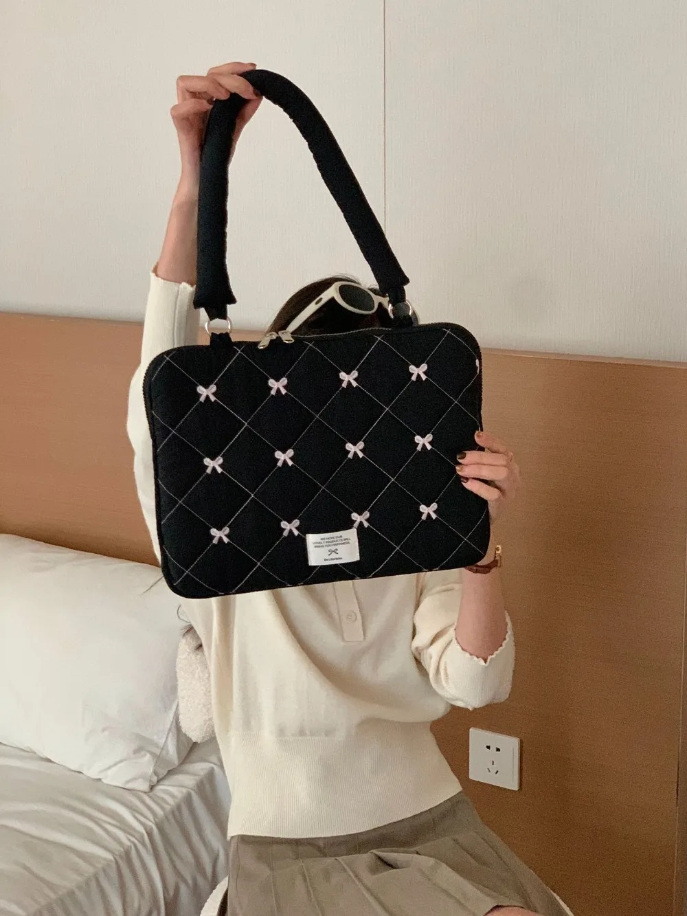 -Elegant bow design: This laptop shoulder bag combines style and functionality, with a charming bow accent. Its elegant design makes it perfect for professional occasions and casual outings, adding a touch of refinement to your appearance.