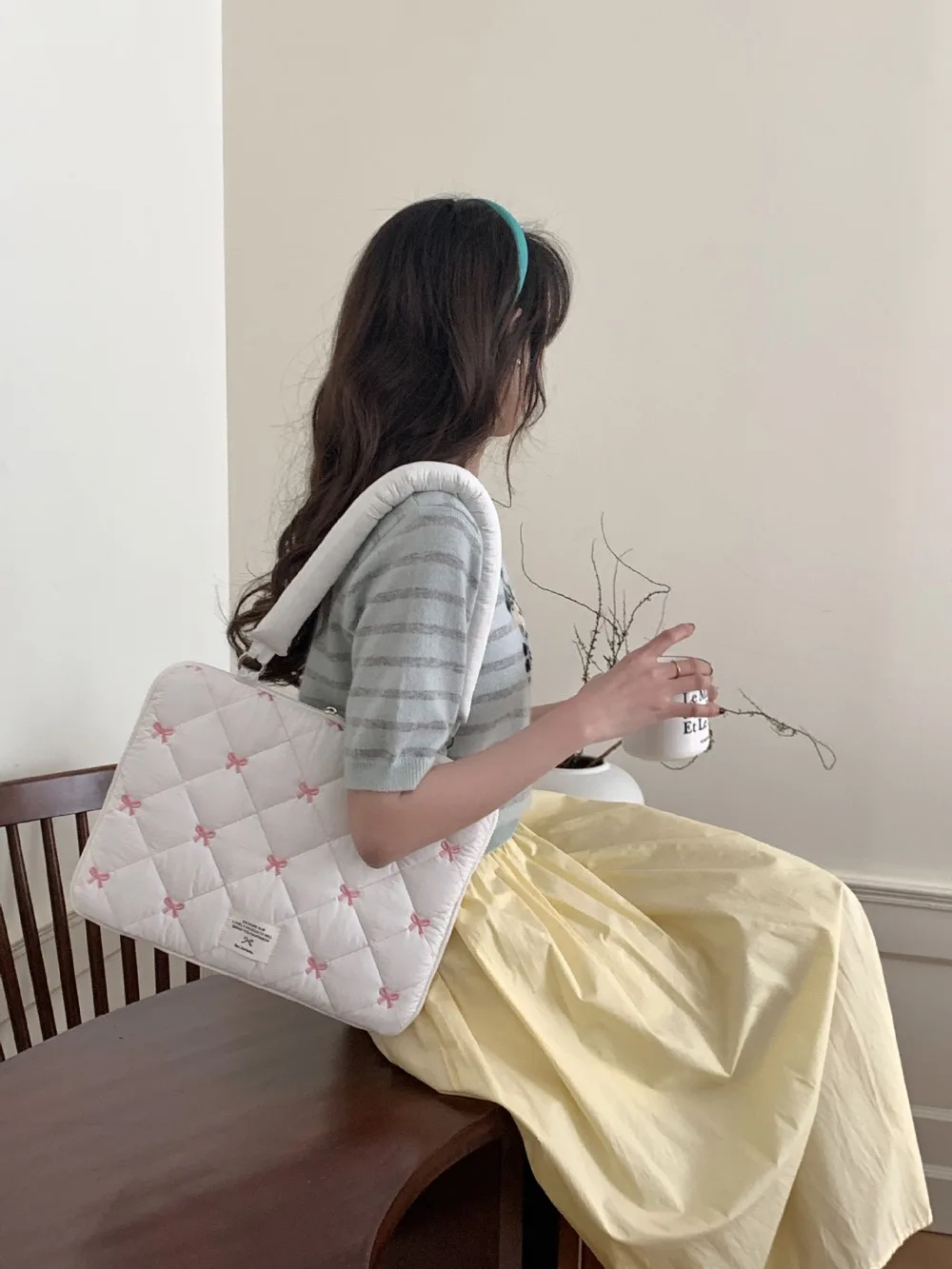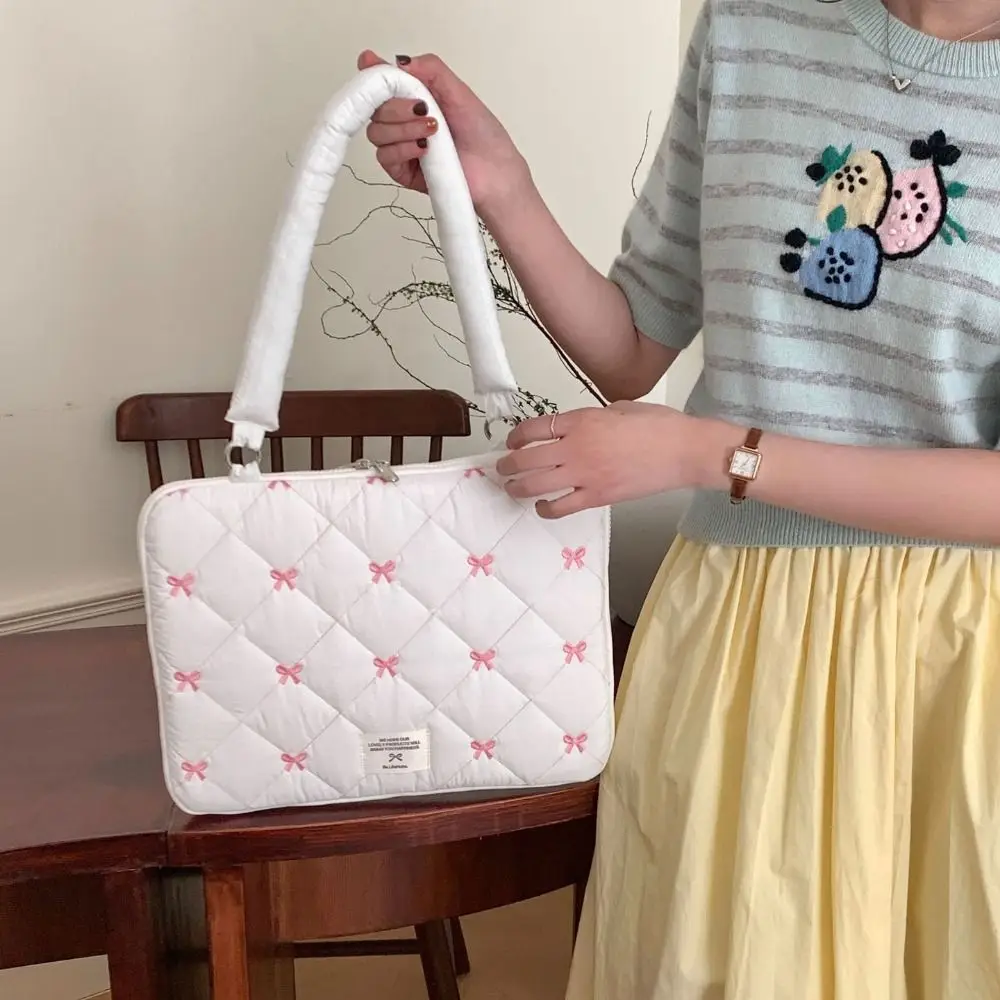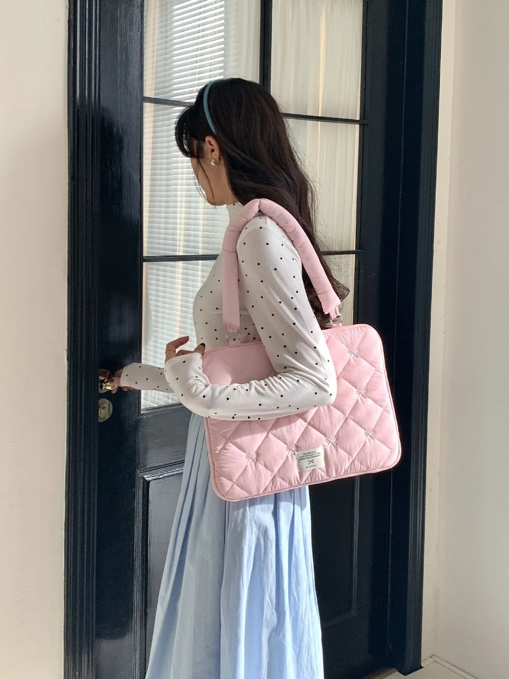-Elegant bow design: This laptop shoulder bag combines style and functionality, with a charming bow accent. Its elegant design makes it perfect for professional occasions and casual outings, adding a touch of refinement to your appearance.