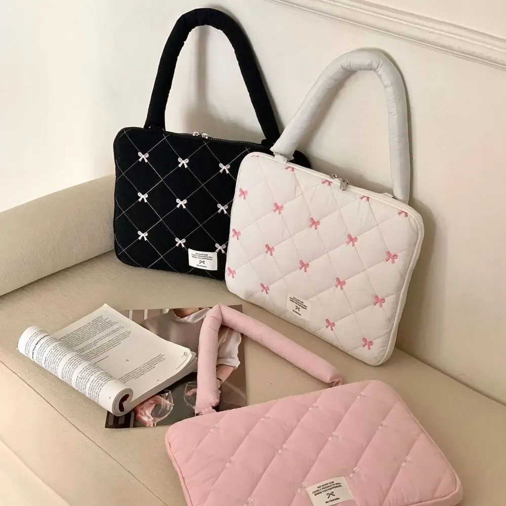 -Elegant bow design: This laptop shoulder bag combines style and functionality, with a charming bow accent. Its elegant design makes it perfect for professional occasions and casual outings, adding a touch of refinement to your appearance.