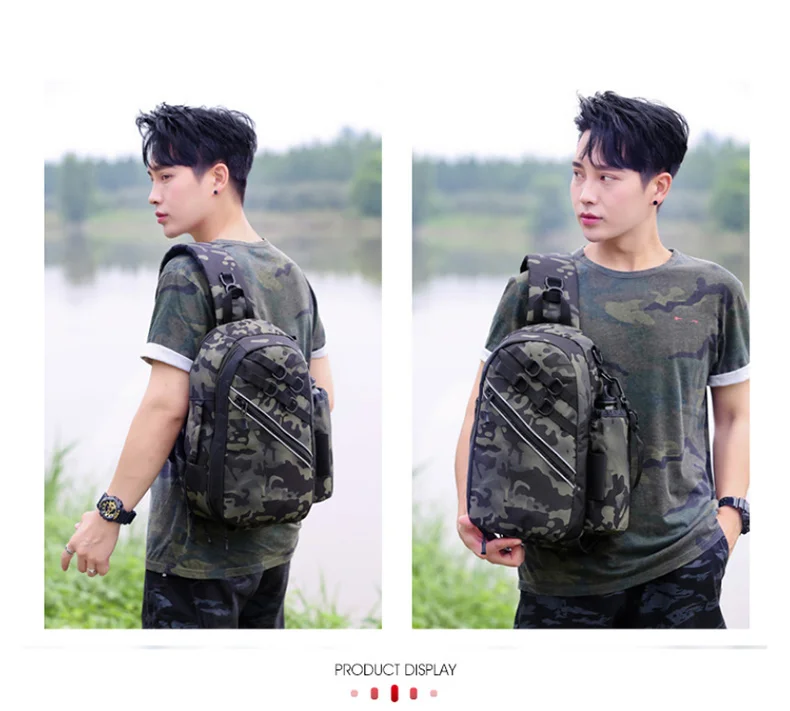 Bolso táctico de camuflaje para hombre, nuevo señuelo de pesca, conducción al aire libre, escalada, bolsa de pecho multifunción, cruzado, bolsa de equipo de pesca XA655G