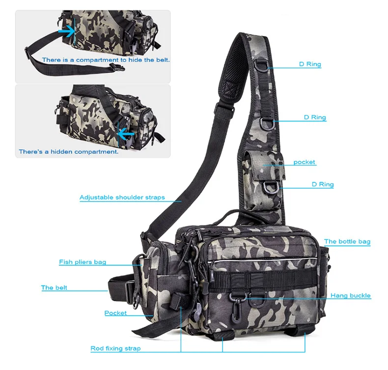 Bolso Watist de camuflaje táctico, bolsa Diagonal Luya para hombro, equipo de Deportes Militares al aire libre, bolsa de cinturón de pesca de nailon resistente al agua X602G
