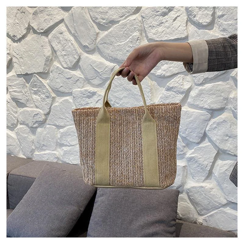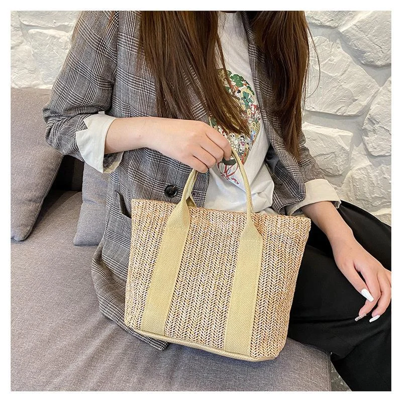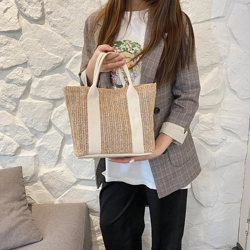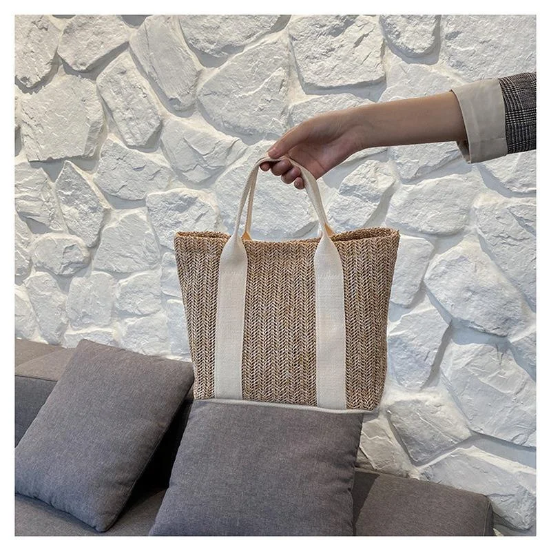 Información de producto: Material: Paja Tamaño: Ancho superior=33 cm Ancho inferior=25 cm Alto=22 cm Ancho=14 cm Correa para el hombro: 47 cm, no ajustable Función: portátil, capacidad de almacenamiento: teléfono móvil, paraguas, Ipad, etc. Nota: Todas las dimensiones se miden manualmente, puede haber un error de 2-3 cm, lo cual es un fenómeno normal.