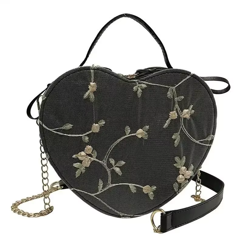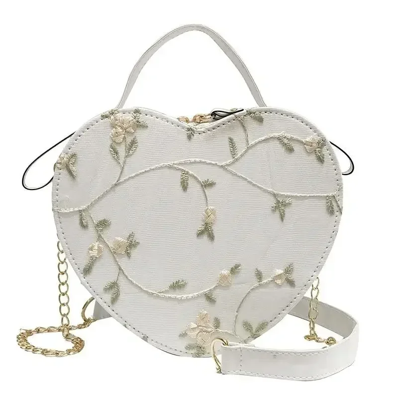 Bolsos redondos de encaje con forma de corazón para mujer, bolso de hombro de cuero PU, bolso cruzado con forma de corazón para primavera y verano