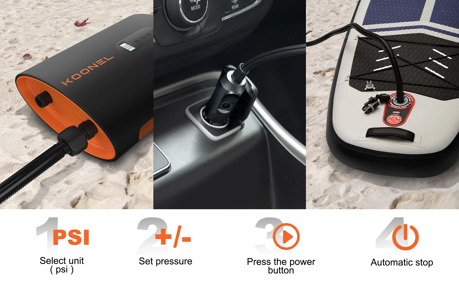 【Pantalla LCD y cable de 10ft 】la bomba de aire de 12 voltios koonel está equipada con pantalla LCD. Puede monitorear continuamente los valores de presión con una precisión de 0.01psi. Línea de 10 pies (unos 3 metros) para un acceso más fácil a los esquís fuera del coche.