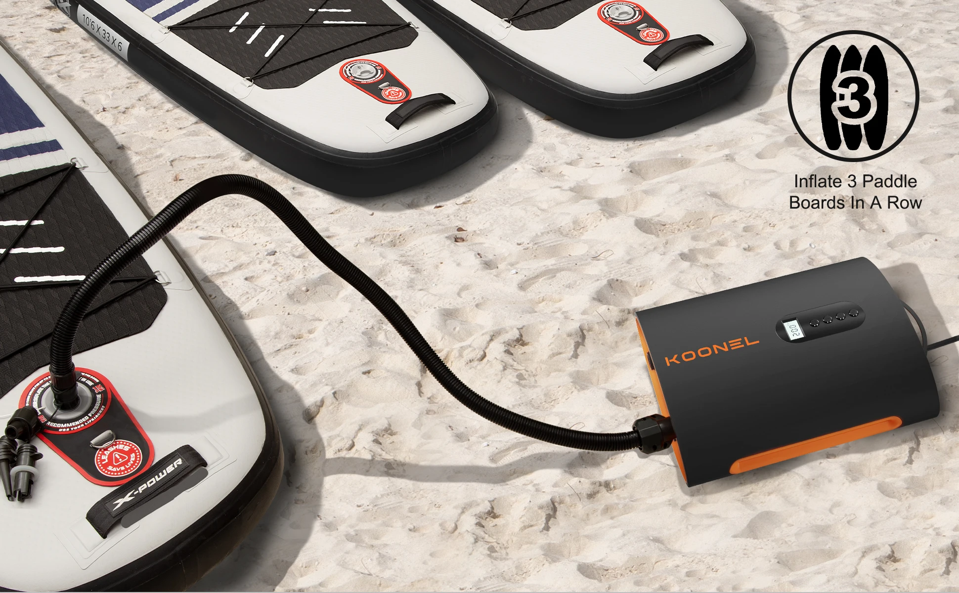 【Bomba de hasta 20PSI 】 el rango de carga eléctrica de la bomba sup es de 0-20PSI y la potencia es de hasta 140W. Solo tarda 7 minutos, 30 segundos en inflar una paleta y 3 paletas seguidas. Esta bomba de aire se conecta a un encendedor de coche de 12V, para que siempre puedas inflar Si conduces a la playa, Bahía o jungla.