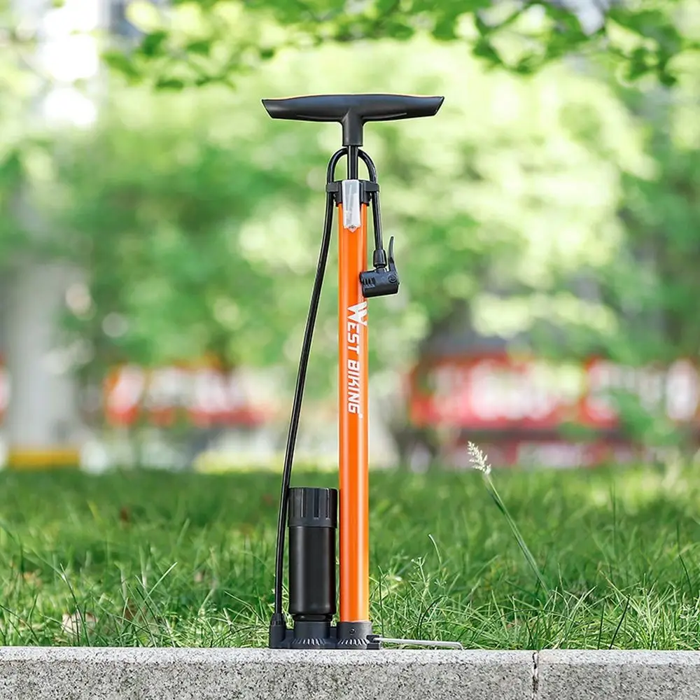 Nombre del artículo: bomba de bicicleta Material: nailon + metal Presión de aire: 120PSI/160PSI Color: naranja El paquete incluye: bomba de bicicleta de 1 pieza Notas: debido a la diferencia de configuración de luz y pantalla, el color del artículo puede ser ligeramente diferente al de las imágenes. Permita una ligera diferencia en las dimensiones debido a las diferentes mediciones manuales.
