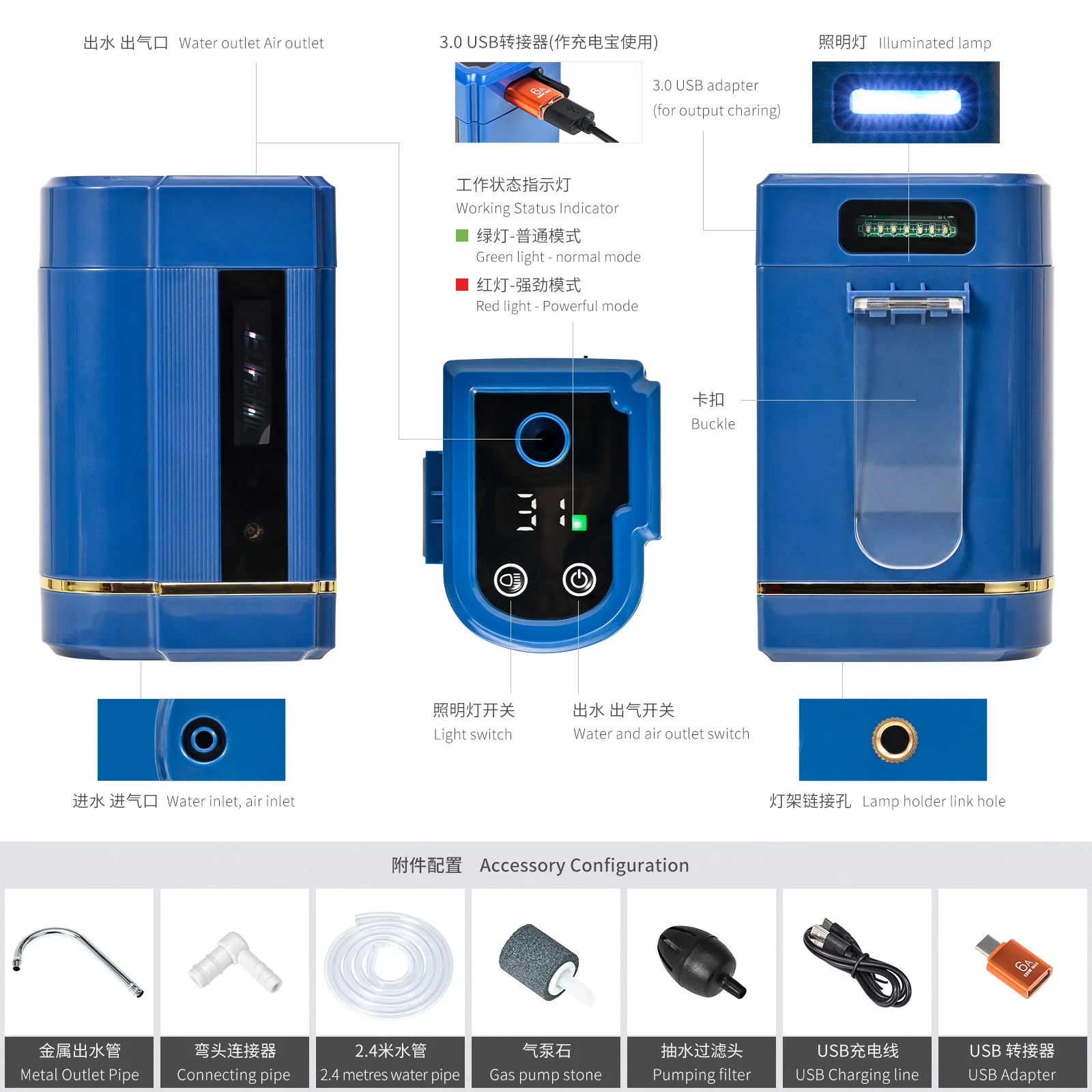 Bomba de oxígeno para pesca, máquina portátil para exteriores, caja de pesca de inducción inteligente, potenciador de agua, bomba de oxígeno, herramientas de pesca