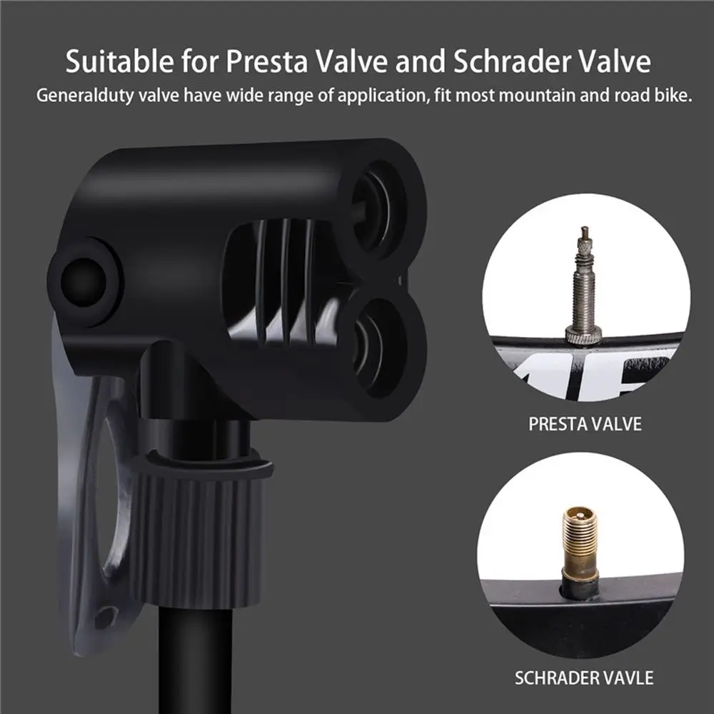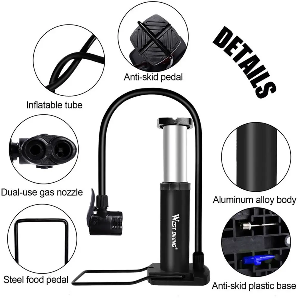 Artículo: Bomba de pie de bicicleta Material: barril de aleación de aluminio si es impermeable: Sí Presión de aire: 120PSI Tamaño: 170*95mm Adecuado para: válvula Schrader, válvula francesa, etc. Descripción: USO MÚLTIPLE Y UNIVERSAL: La bomba de aire de bicicleta de diseño profesional, es compatible con válvulas duales Presta y Schrader. Nuestra bomba de suelo para bicicletas es fácil de cambiar, sin molestias para convertir componentes y piezas, cierre hermético sin fugas de aire. LIGERO, MATERIAL SÓLIDO Y CONSTRUCCIÓN EXQUISITA: barril de bomba de bicicleta de aleación de aluminio, sin pelados de pintura, sin oxidación. Calidad duradera para usarlo por más tiempo y ahorrar dinero. Fácil de llevar: La bomba de bicicleta de tamaño mini es un poco pequeña, cabe fácilmente en su mochila y es conveniente para bombear en cualquier lugar. AMPLIA GAMA DE APLICACIONES: Válvulas multifuncionales, las bombas de neumáticos pueden inflar bicicletas, vehículos eléctricos, motocicletas y cualquier bola inflable o juguete. Bonificación: una válvula de bola y una aguja de gas. BIEN DISEÑADO, MANOS LIBRES: El tubo de goma de la bomba de neumáticos portátil es desmontable, a prueba de heladas y resistente a altas temperaturas. Con pedal antideslizante, base de hierro fundido, la mini bomba de suelo es estable y no se desliza. El inflado activado por el pie ahorra más trabajo y es más resistente. Alta presión, hasta 120psi, bombeo rápido y ahorro de tiempo. El paquete incluye: 1 Bomba de bicicleta, 1 aguja de bola.