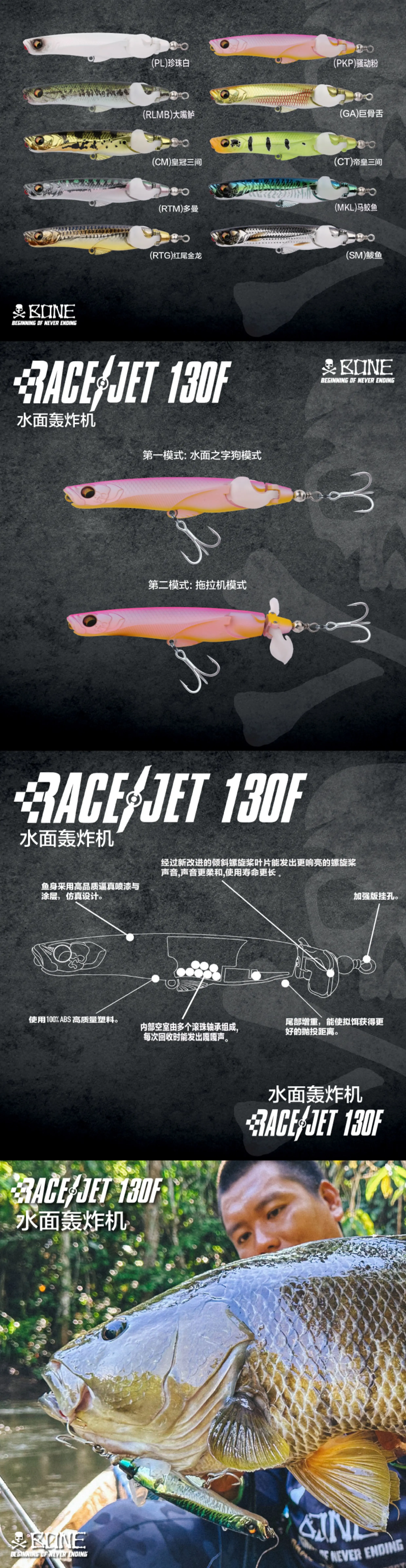 BONE Bones Nuevo bombardero de superficie 130F26g Hélice de superficie de caída de largo alcance Onda Escalada Percha de mar
