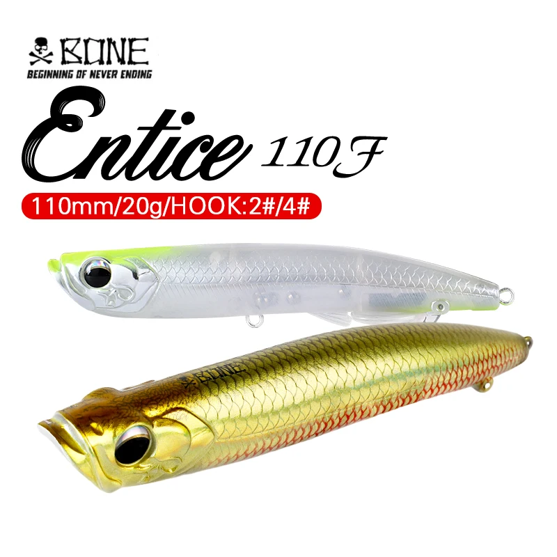 Señuelo de lápiz de agua superior Bone Entice flotante 110MM 20G superficie bombardero hélice Popper cebo duro cebo Artificial señuelos para pesca